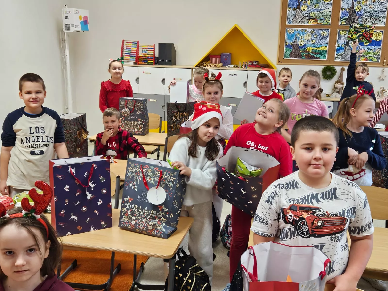Radości, śmiechu i ekscytacji dzieci nie da się opisać – w każdej klasie rozbrzmiewały okrzyki zachwytu, świąteczne piosenki, a uśmiechy nie znikały z twarzy najmłodszych nawet na chwilę. Mikołaj jak zawsze zaskoczył wszystkich swoją pomysłowością, ciepłym słowem i indywidualnym podejściem do każdego dziecka.