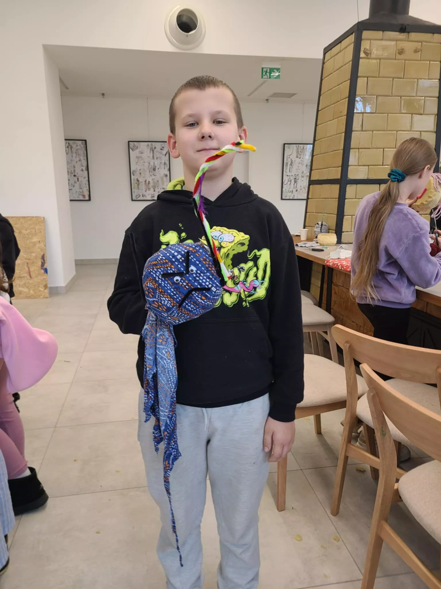 Każdy uczeń samodzielnie wykonał własną lalkę teatralną tzw. pacynkę. Dwóm uczniom z pomocą instruktora warsztatów udało się stworzyć jawajkę. Na koniec autorzy dzieł próbowali swoich sił jako animatorzy lalek. Było to bardzo ciekawe doświadczenie.