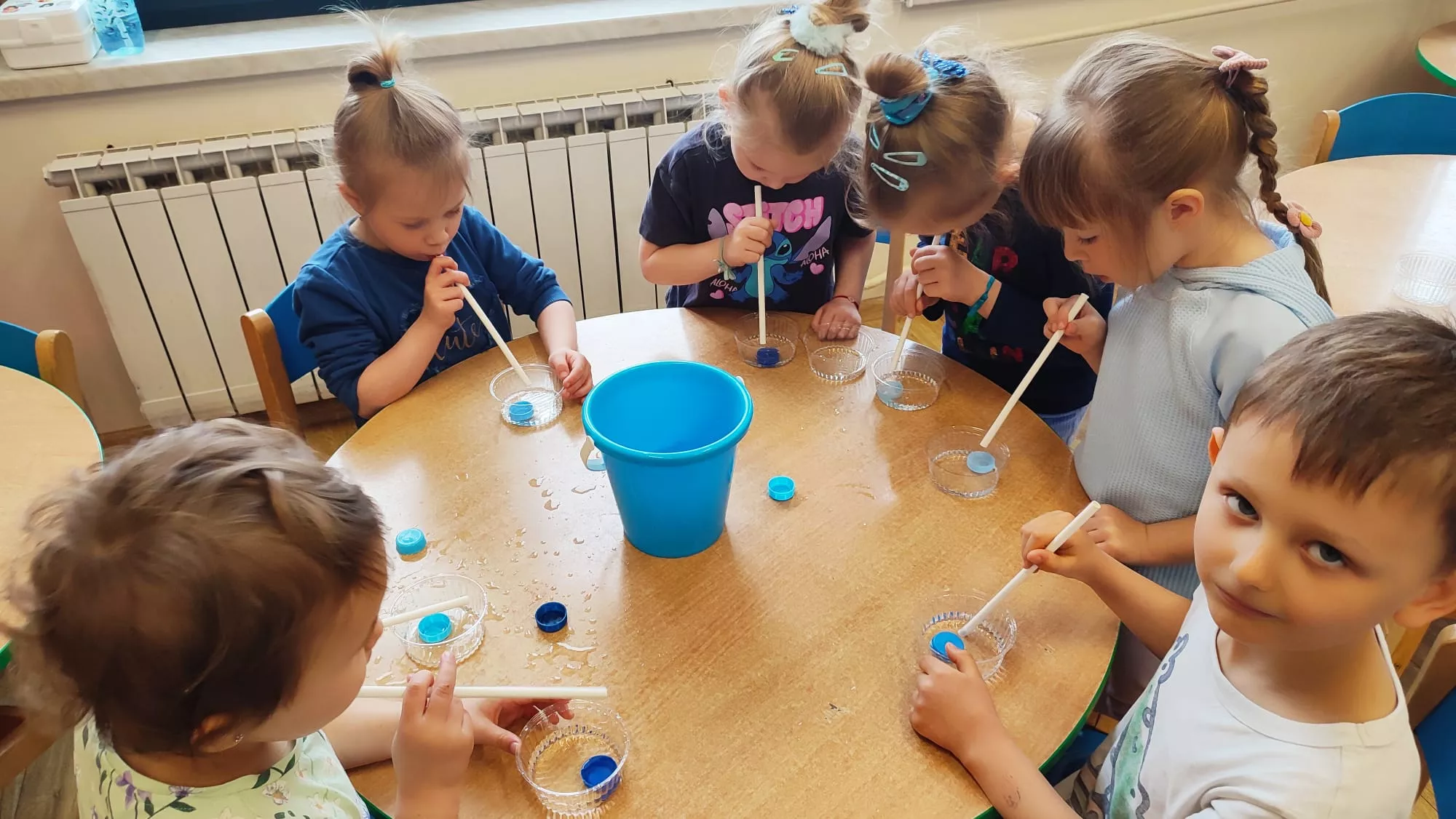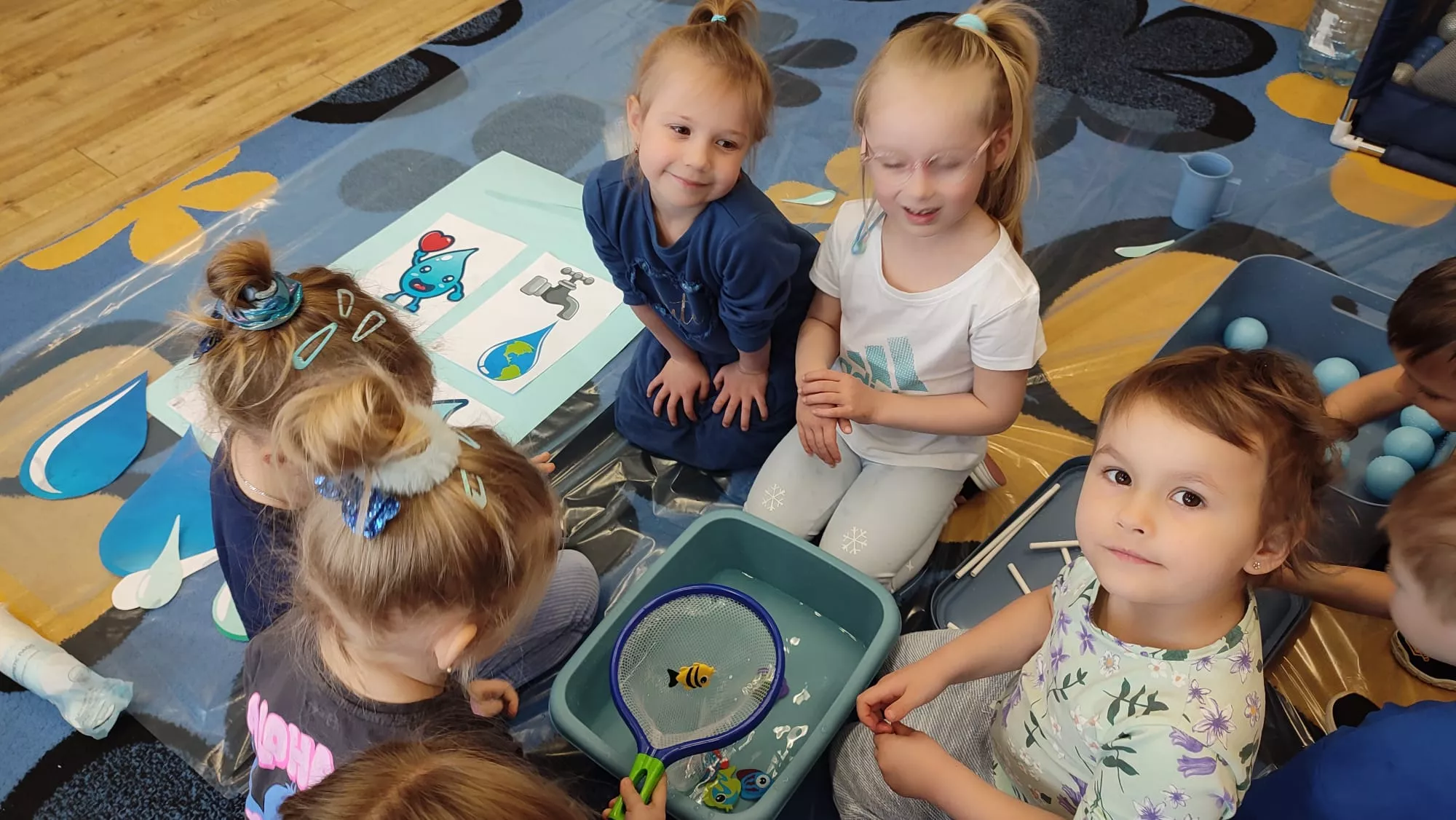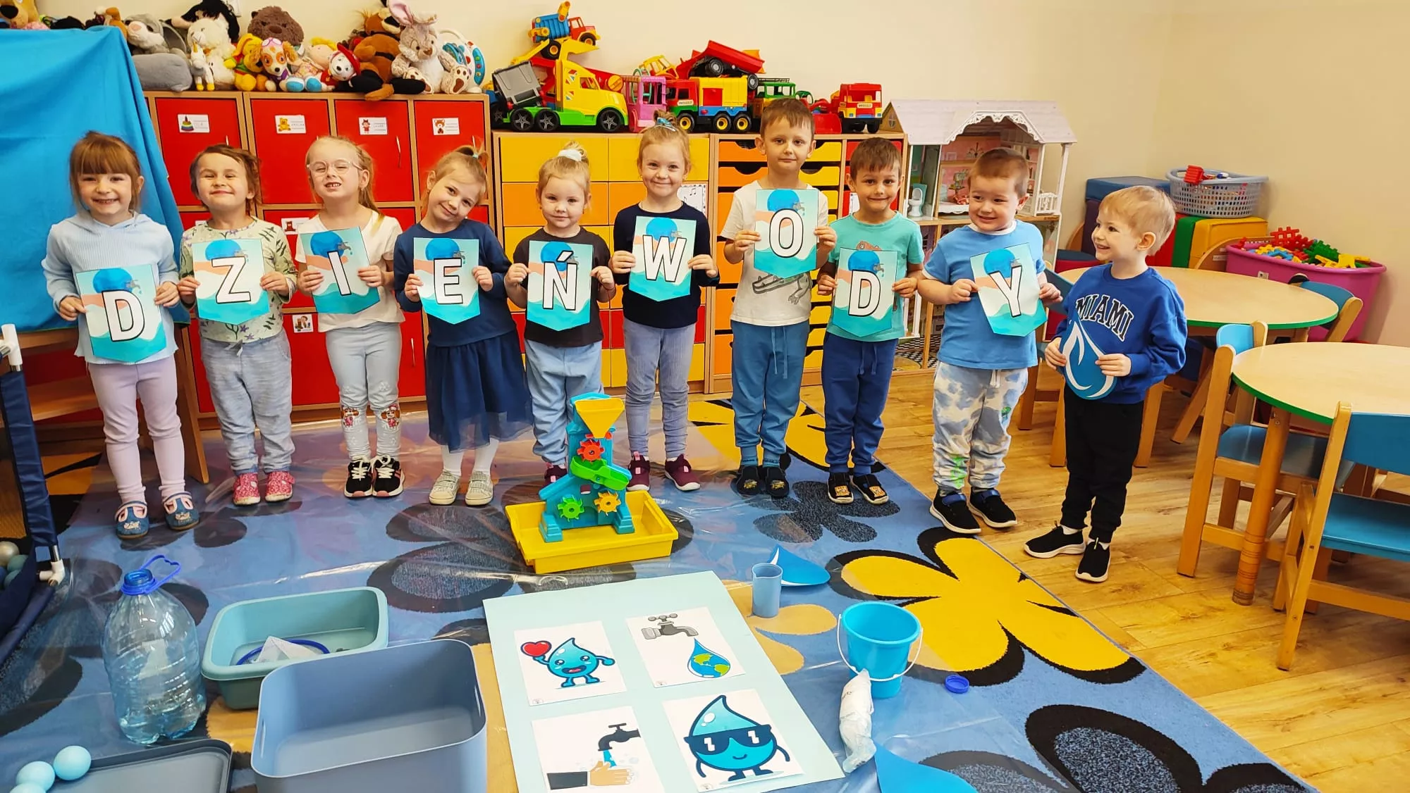Wodne zabawy i eksperymenty pozwoliły na radosne spędzenie czasu w przedszkolu oraz pogłębienie wiedzy o jednym z czterech żywiołów. Dzieci poznały właściwości wody i jej znaczenie w przyrodzie. Wykonały pracę plastyczną i nauczyły się piosenki.