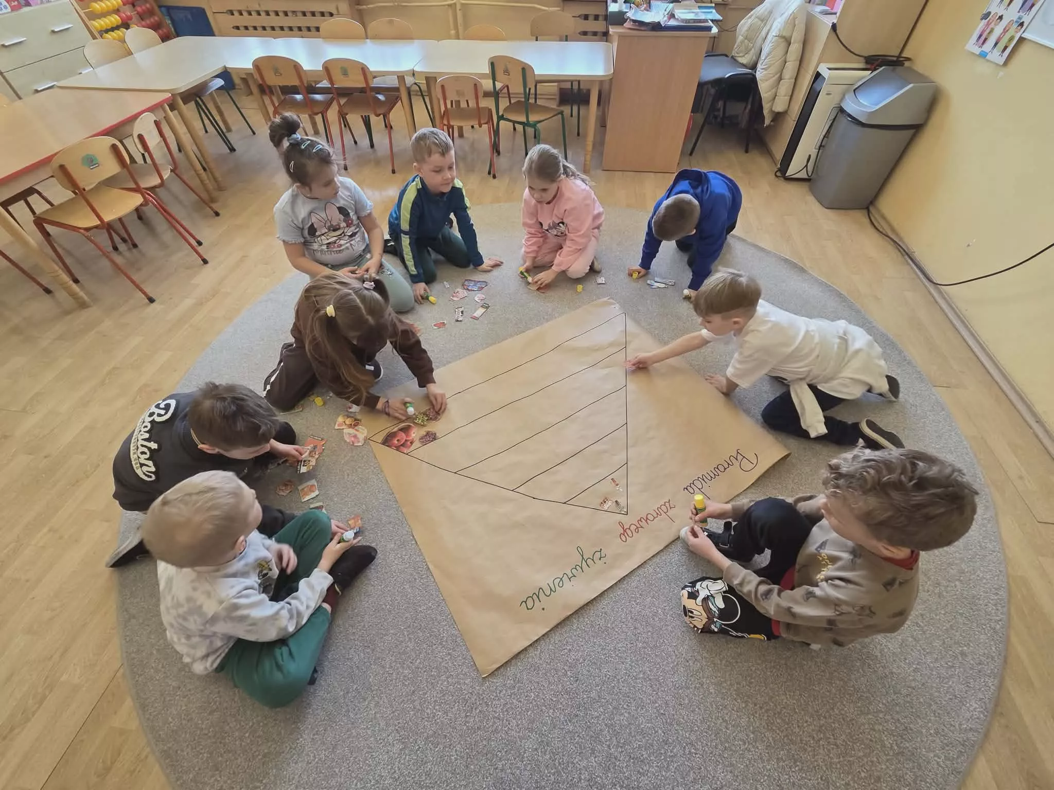 Przedszkolaki usiadły do stołu, na którym znajdowały się produkty składające się na nasze zdrowe śniadanie. Do wyboru były różne składniki: chleb, świeże warzywa, ser, szynka. Każdy przedszkolak mógł samodzielnie skomponować swój posiłek z ulubionych produktów. Nasze dzieci przygotowały więc śniadaniową ucztę - tworzyły pyszne i zdrowe kanapki o oryginalnym wyglądzie, a następnie zjadały je z wielkim apetytem. Podczas przygotowywania posiłku dzieci kształciły odpowiednie nawyki żywieniowe, rozwijały kreatywność, wyobraźnię oraz dbałość o higienę. Okazało się, że przedszkolaki jednak lubią warzywa, a najlepiej smakują im kanapki zrobione własnoręcznie, które wyglądały pięknie, kolorowo i zawierały mnóstwo witamin.