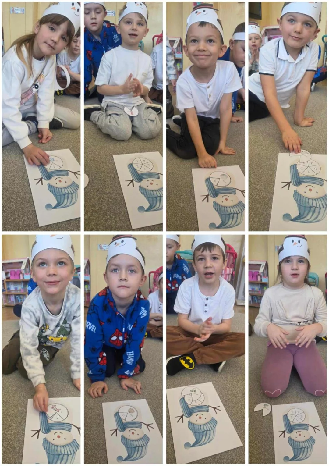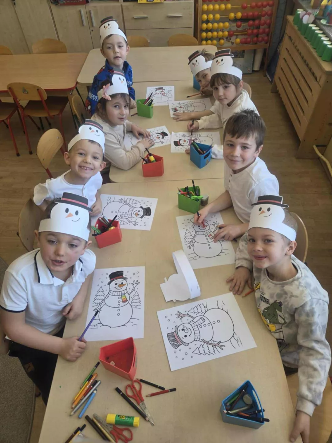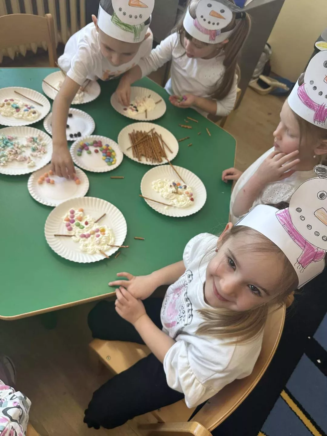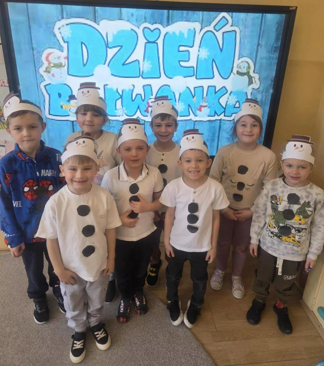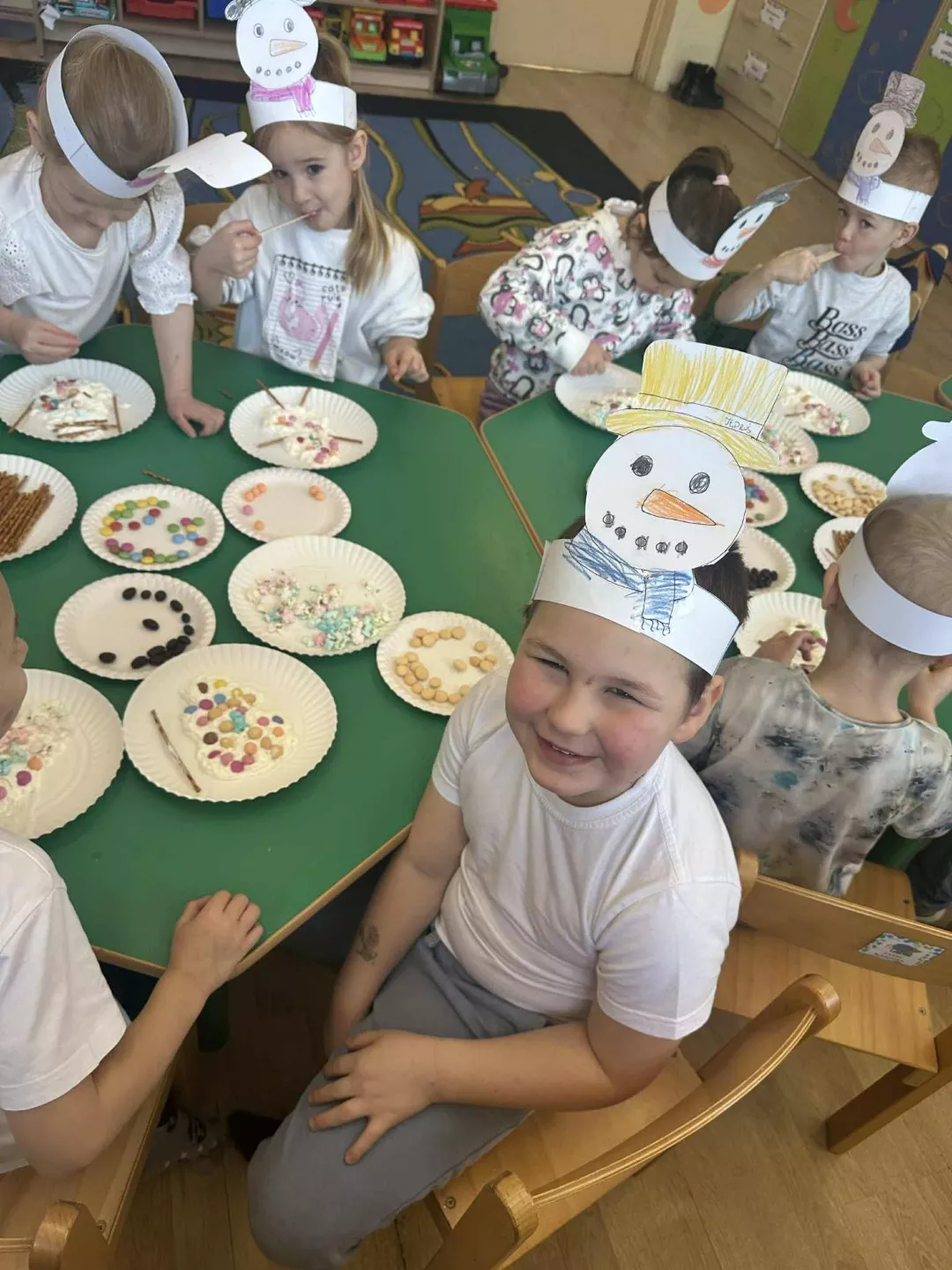 Tego dnia dzieci wykonały opaski na głowę i zamieniły się w małe śniegowe ludki.