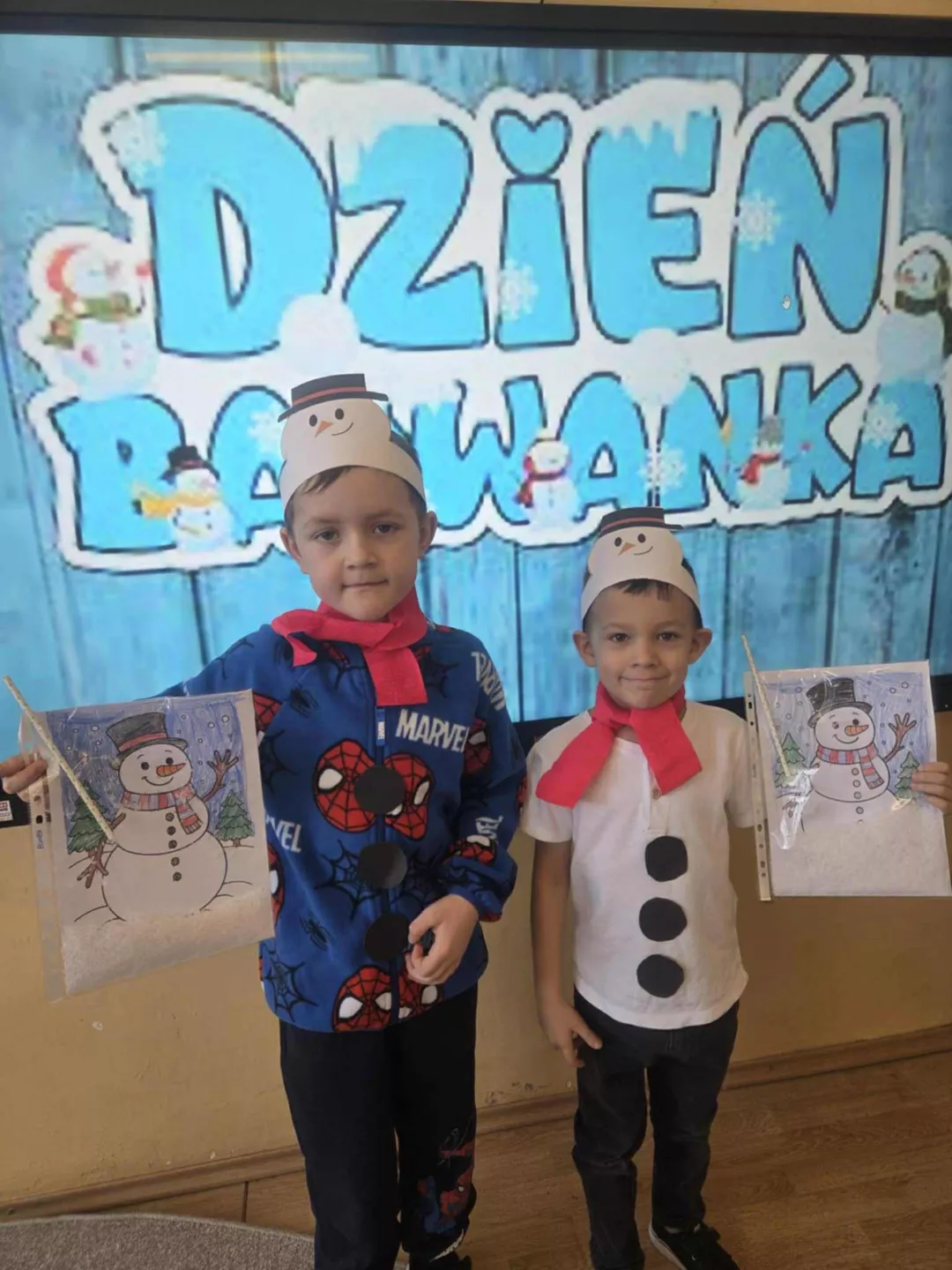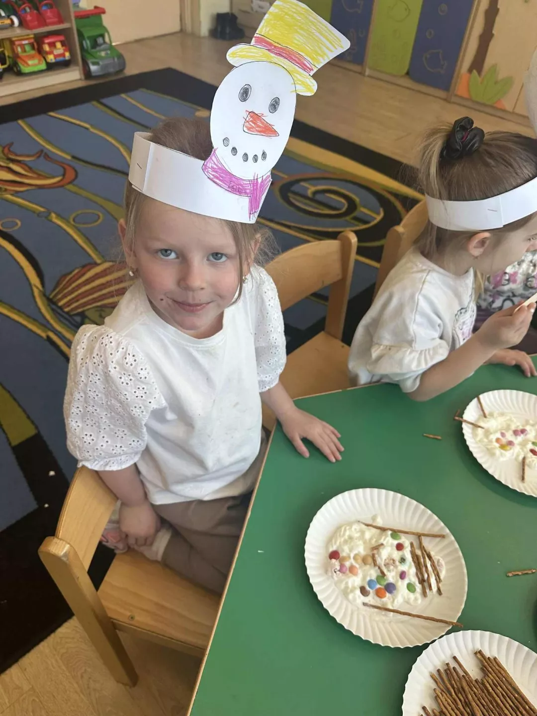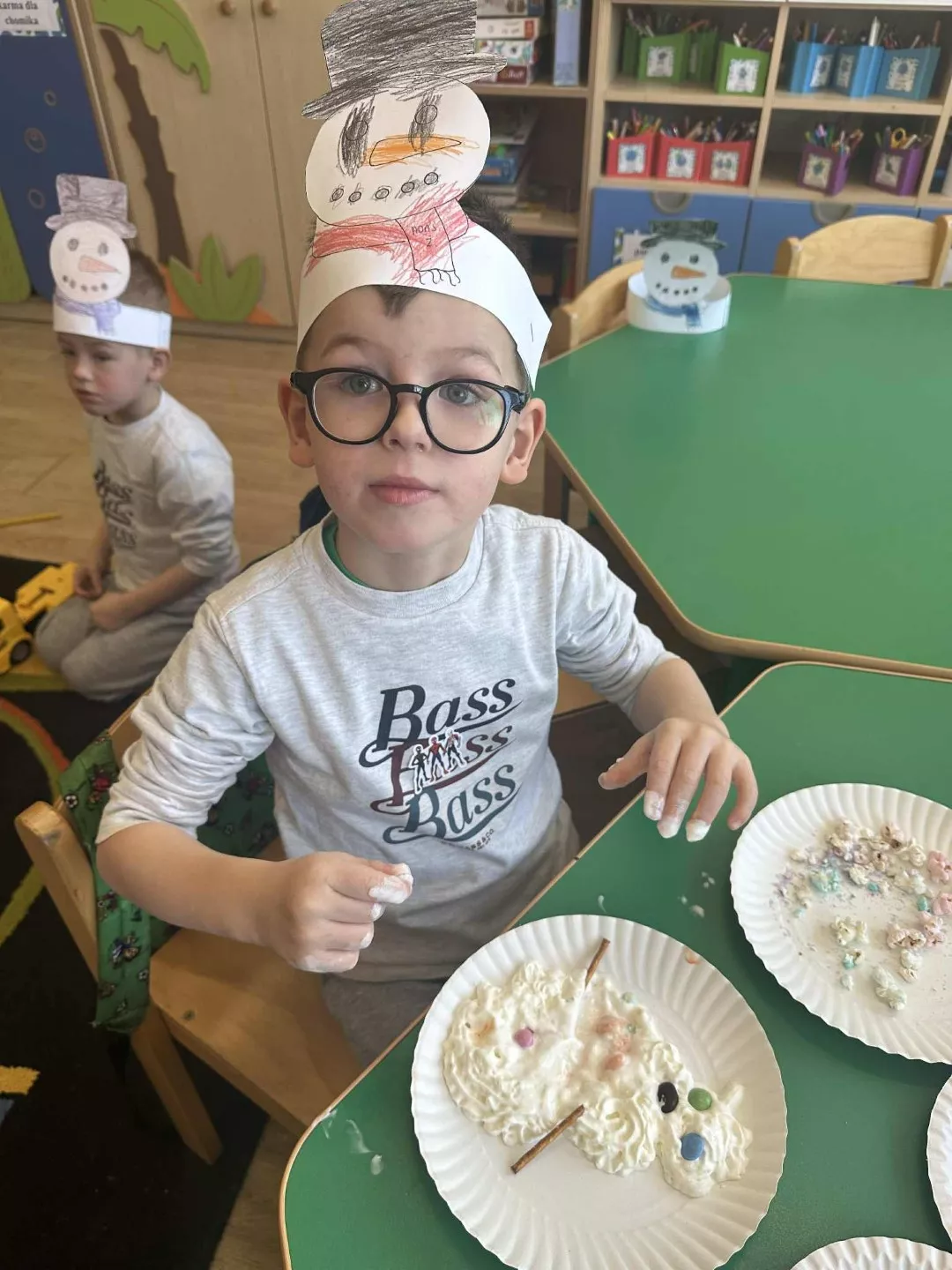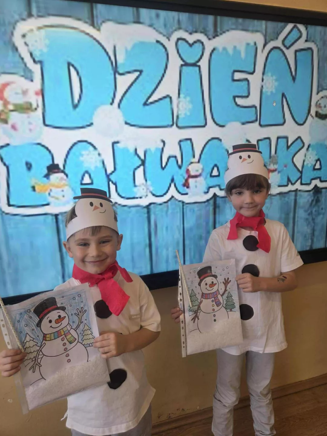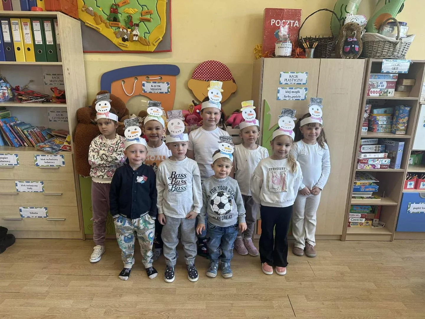 Tego dnia dzieci wykonały opaski na głowę i zamieniły się w małe śniegowe ludki.