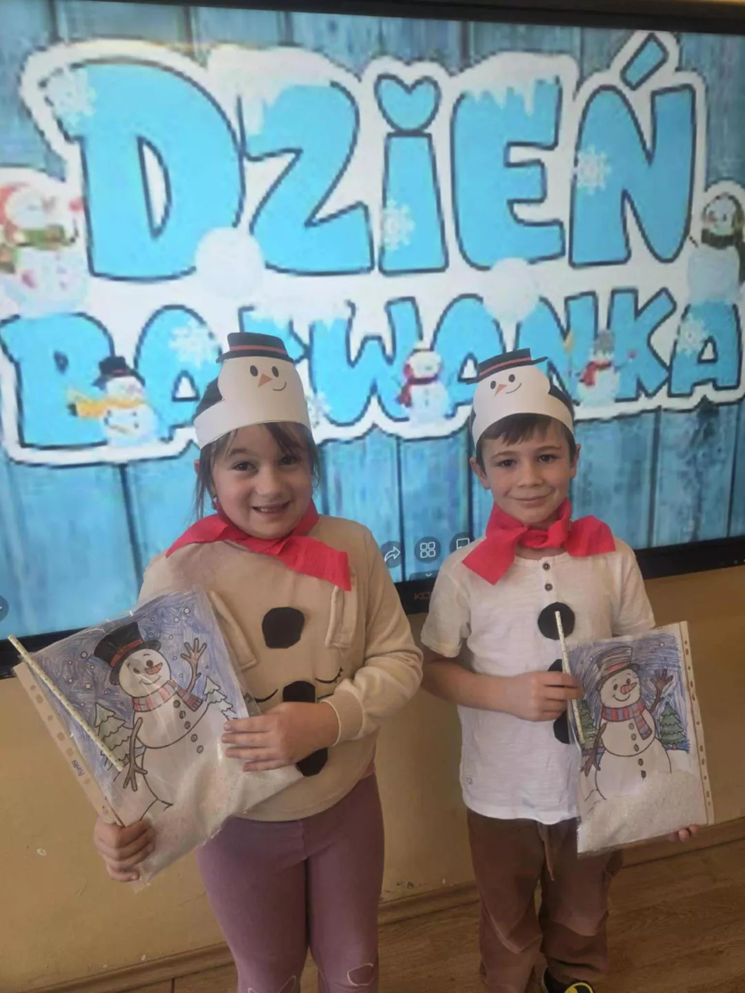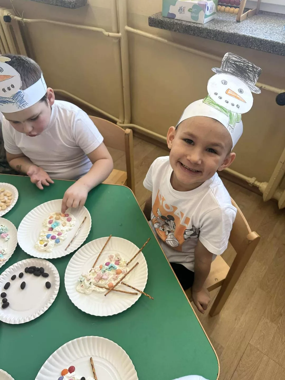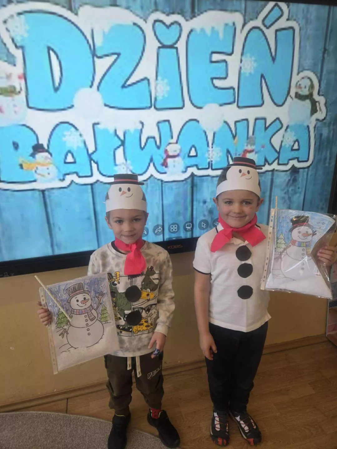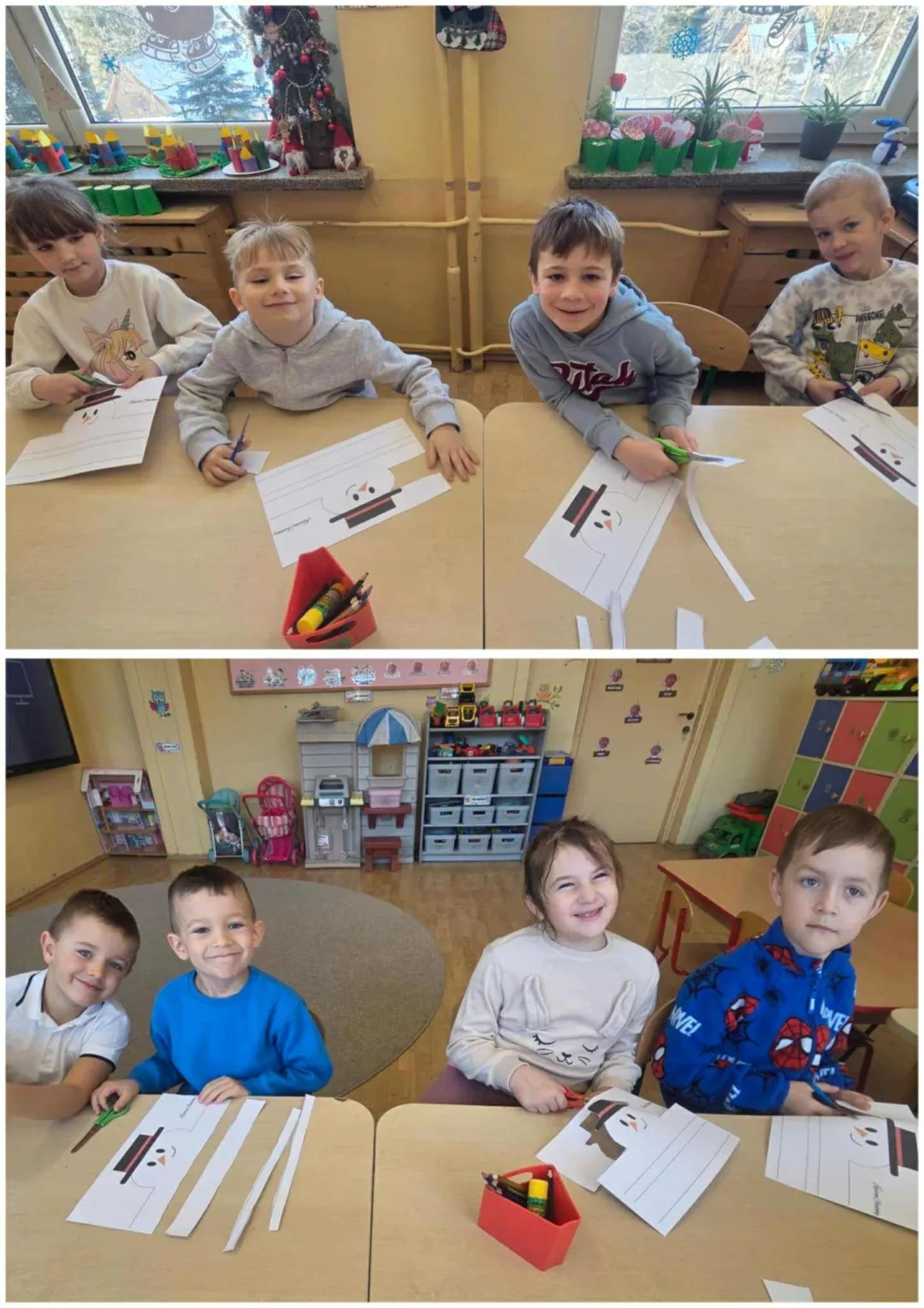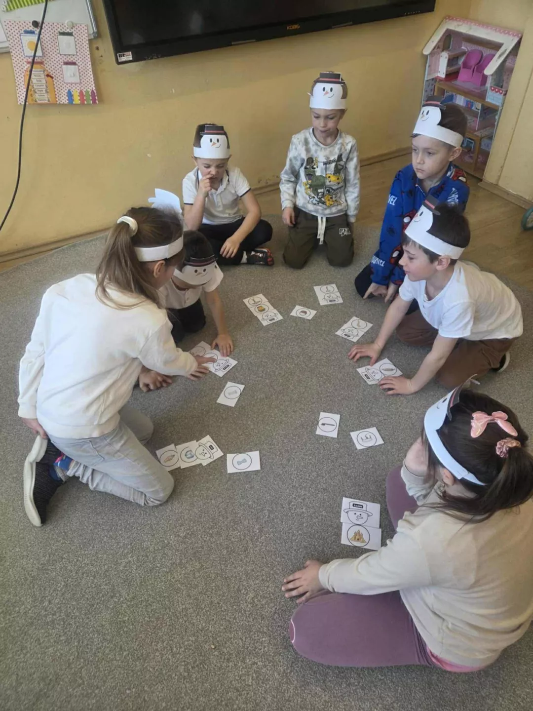 Tego dnia dzieci wykonały opaski na głowę i zamieniły się w małe śniegowe ludki.