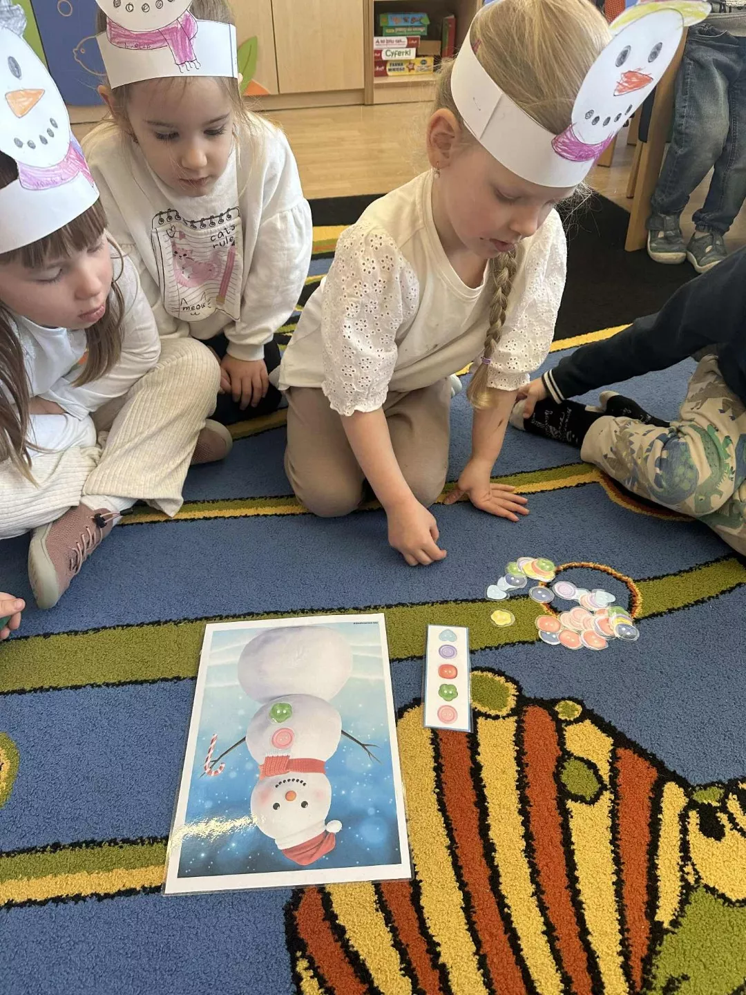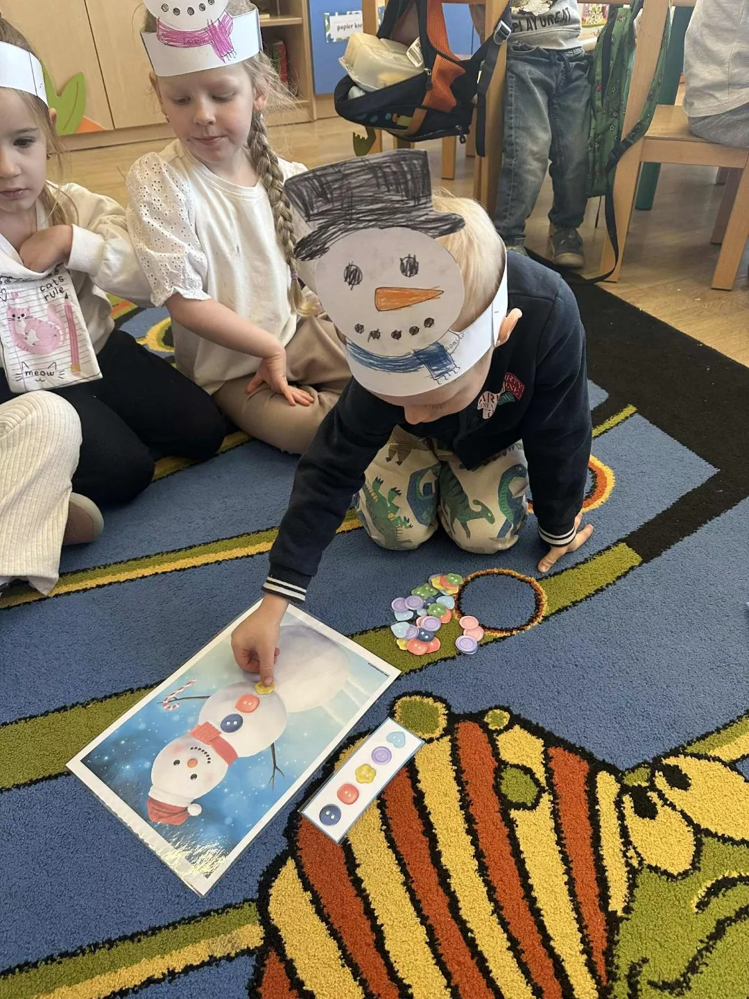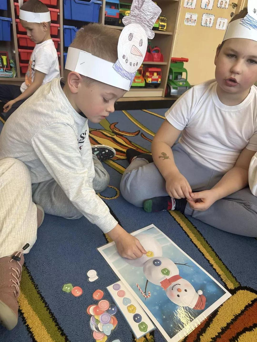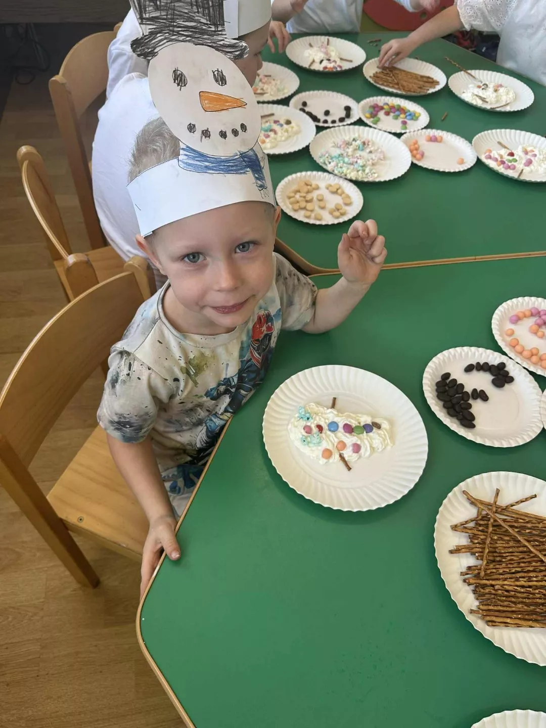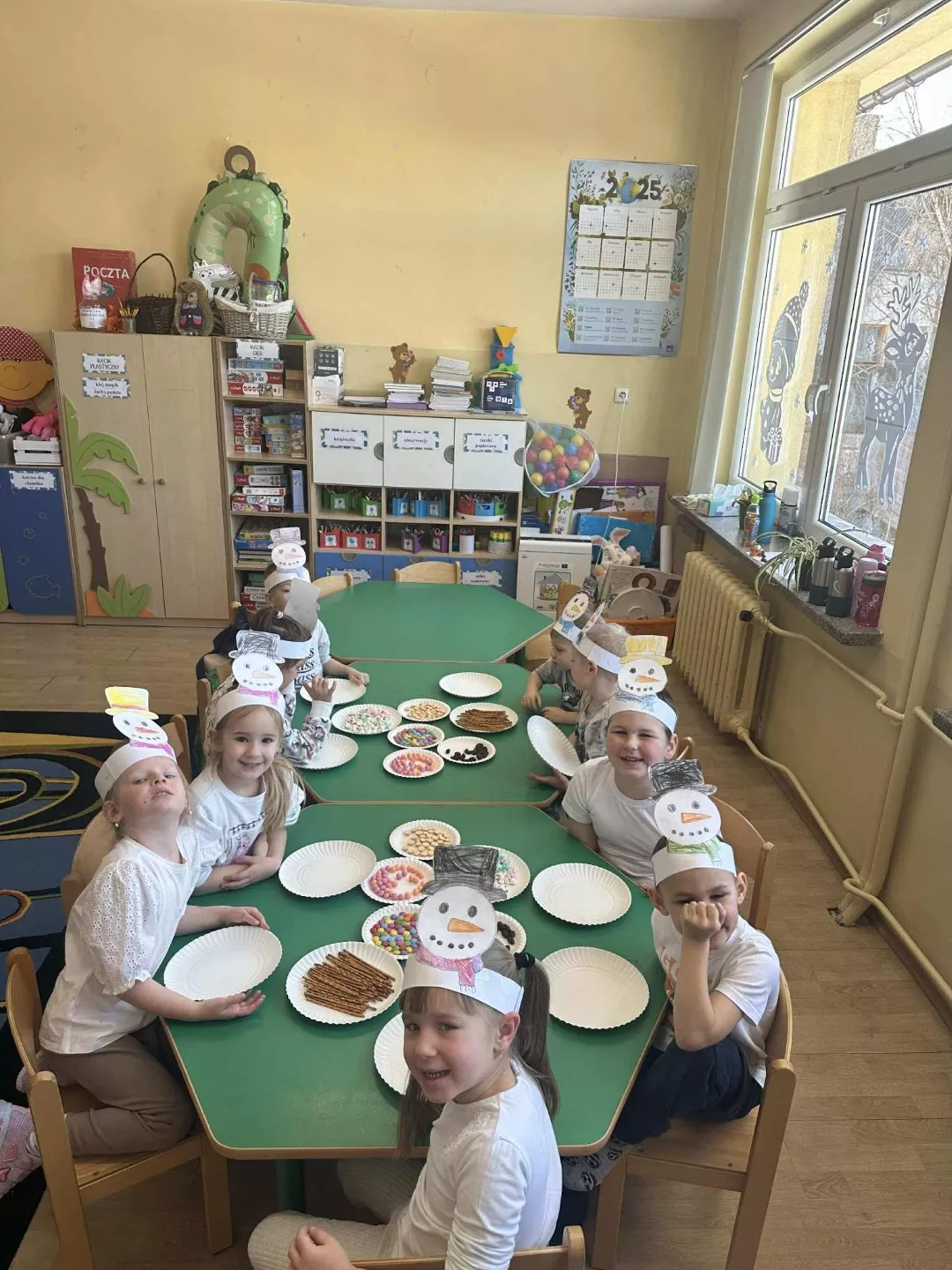 Tego dnia dzieci wykonały opaski na głowę i zamieniły się w małe śniegowe ludki.