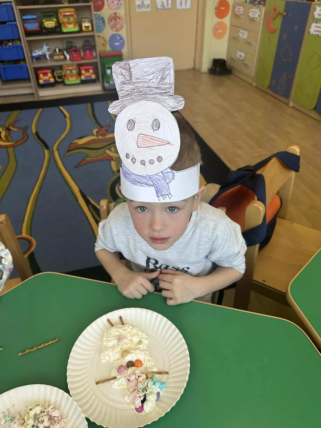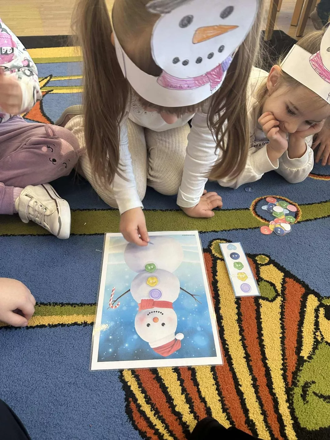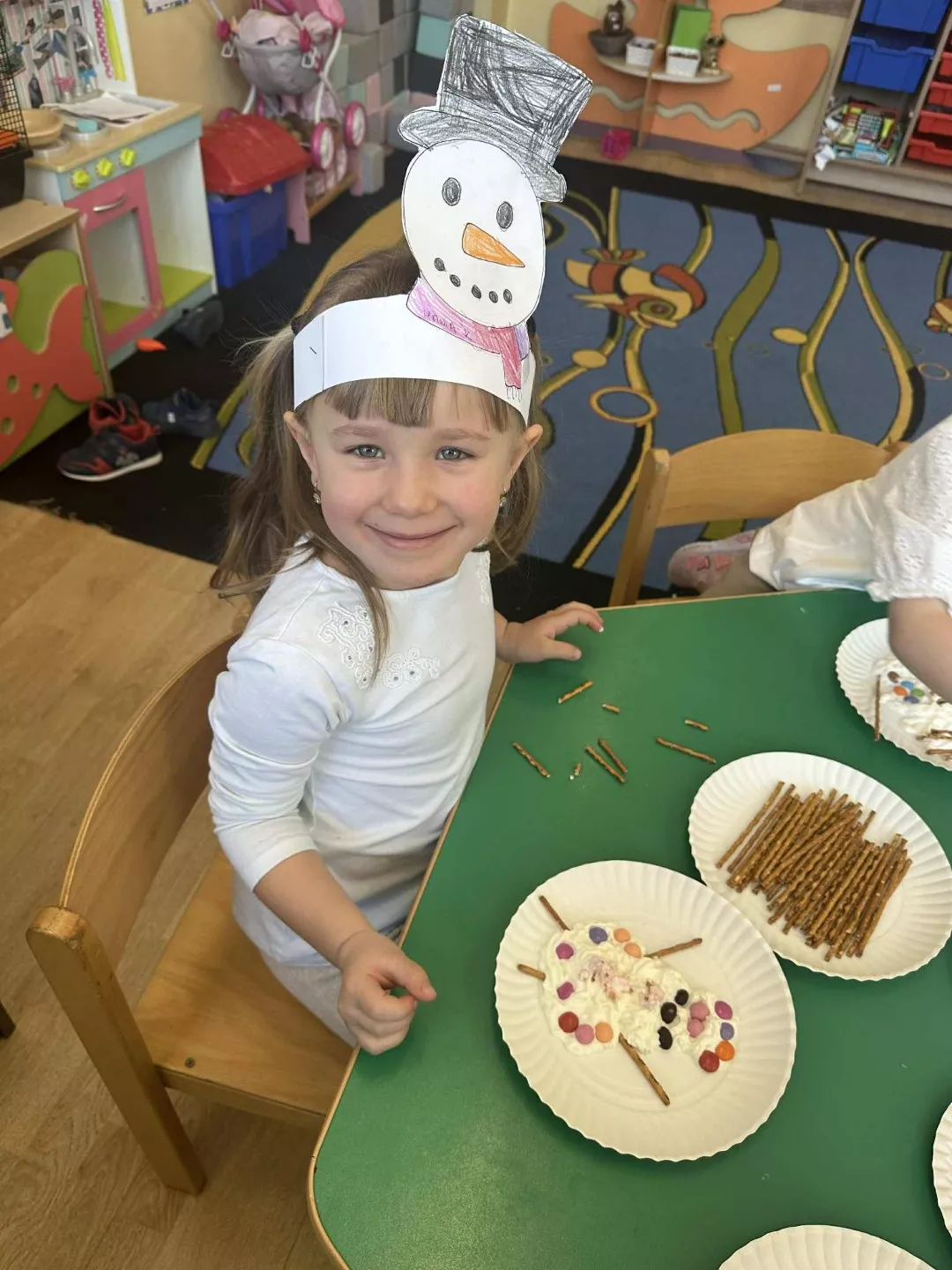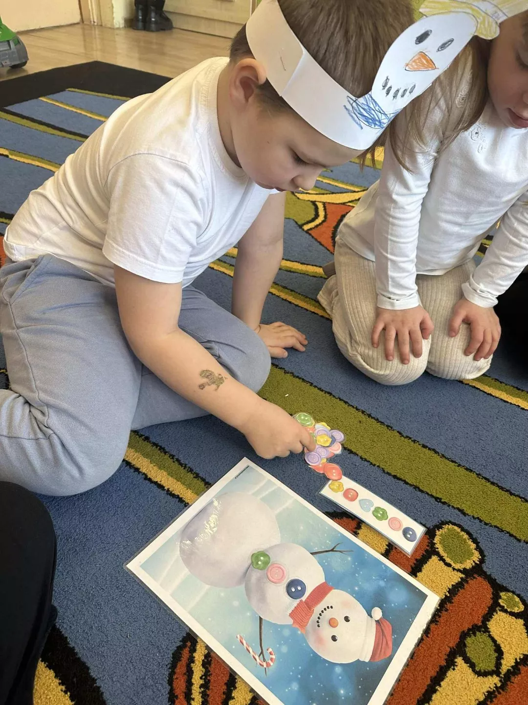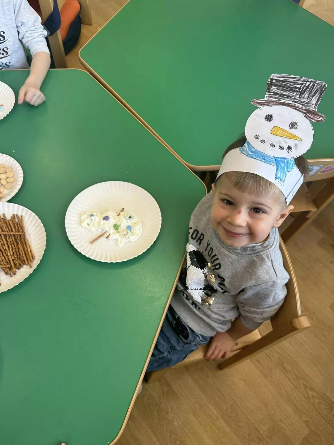 Tego dnia dzieci wykonały opaski na głowę i zamieniły się w małe śniegowe ludki.