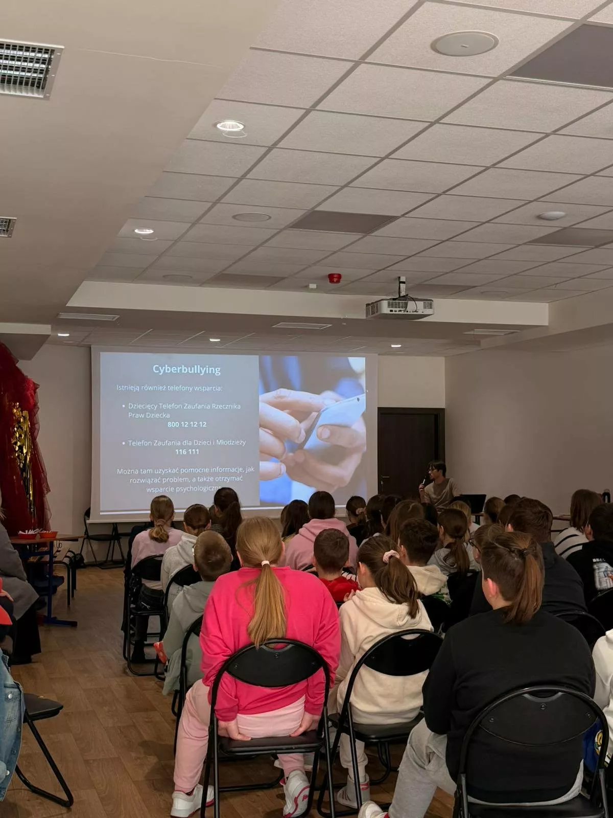 Z tej okazji uczniowie wzięli udział w spotkaniach dotyczących zagrożeń w sieci oraz zasad bezpiecznego korzystania z Internetu. Młodsze klasy uczyły się rozpoznawać bezpieczne i niebezpieczne zachowania online poprzez scenki, wspólne rozmowy i aktywności. Starsi uczniowie wysłuchali prelekcji o wpływie nowych technologii na rozwój oraz o cyberprzemocy, a następnie pracowali zespołowo, rozwiązując zadania na terenie szkoły.