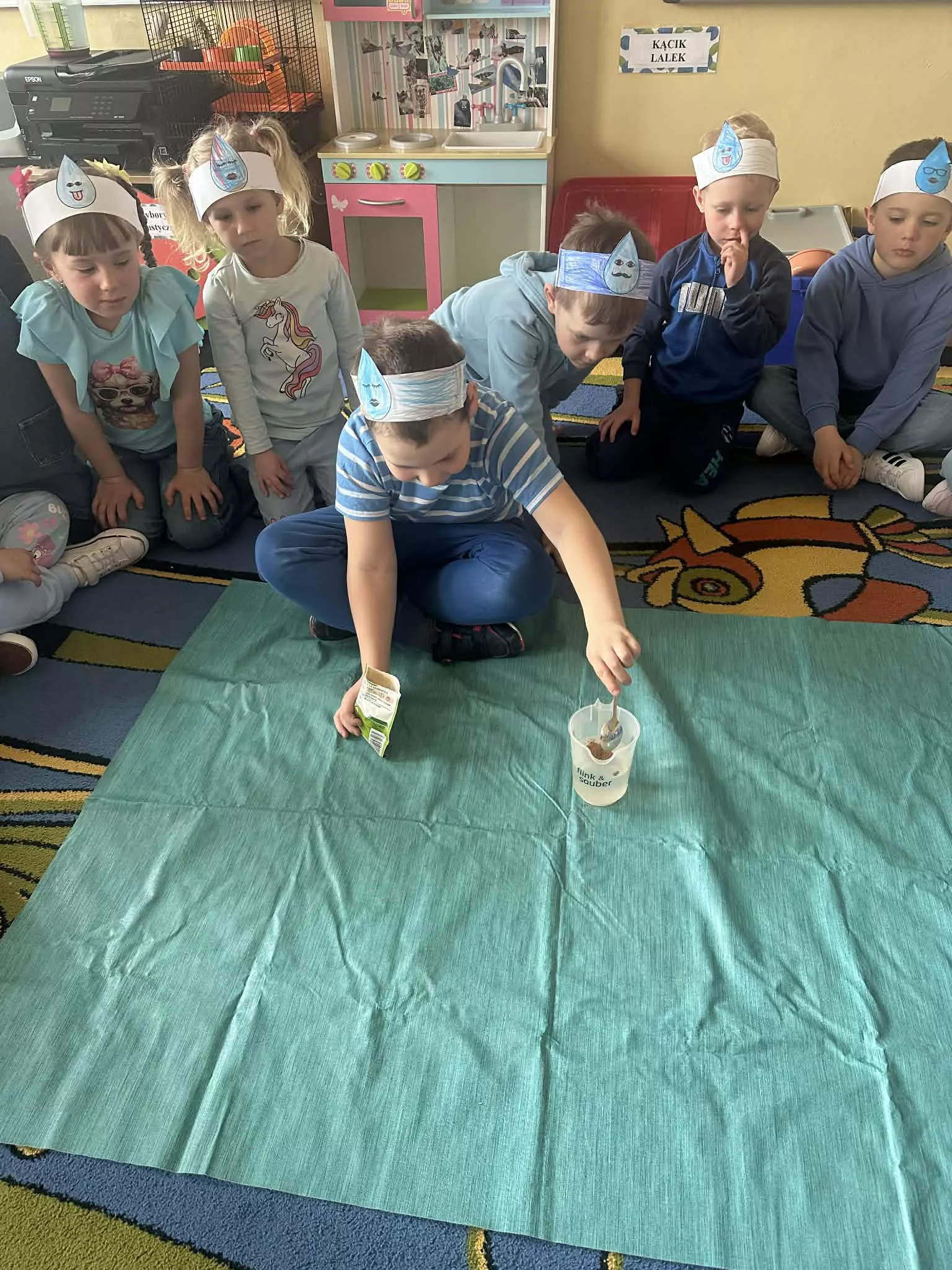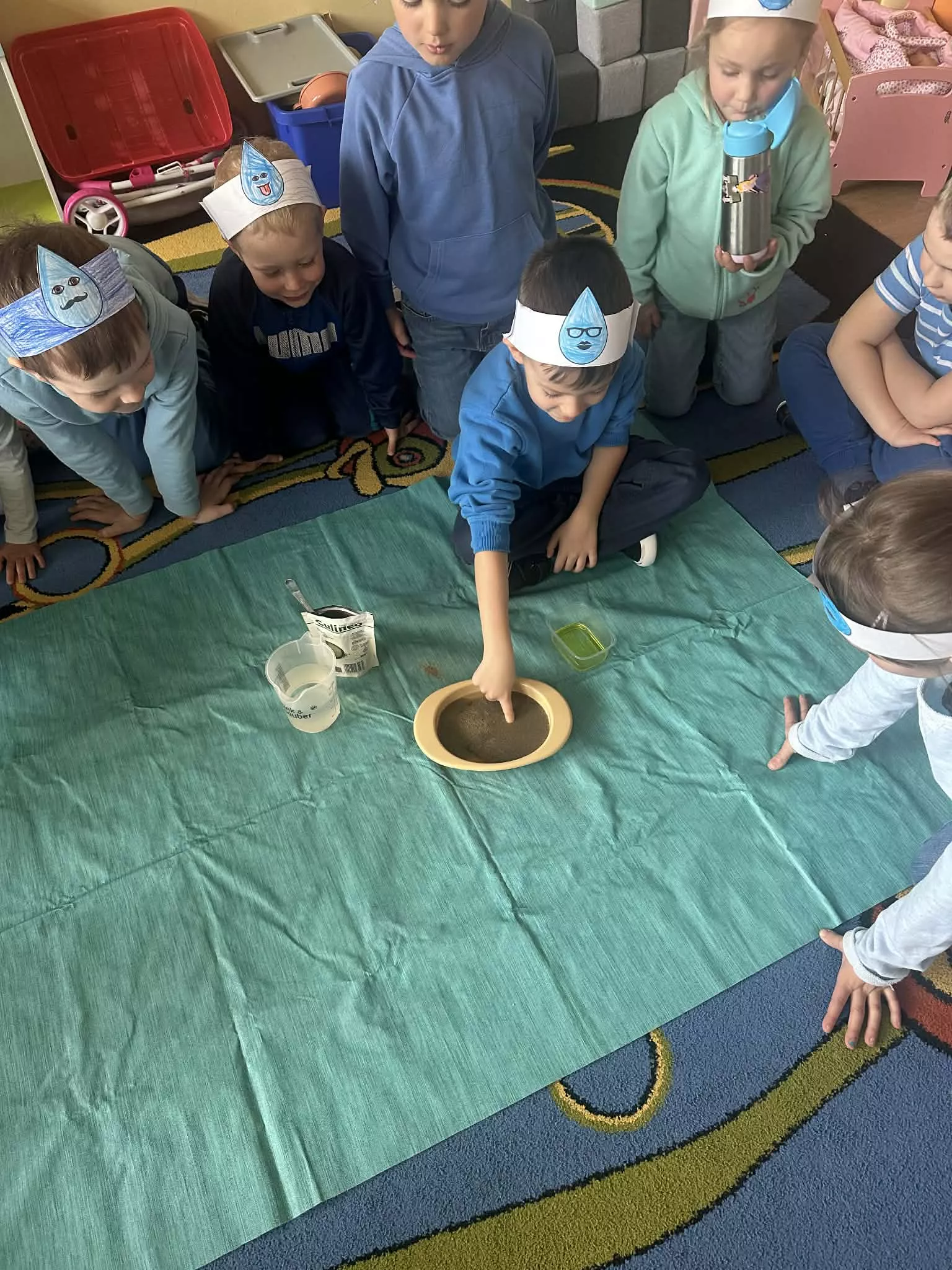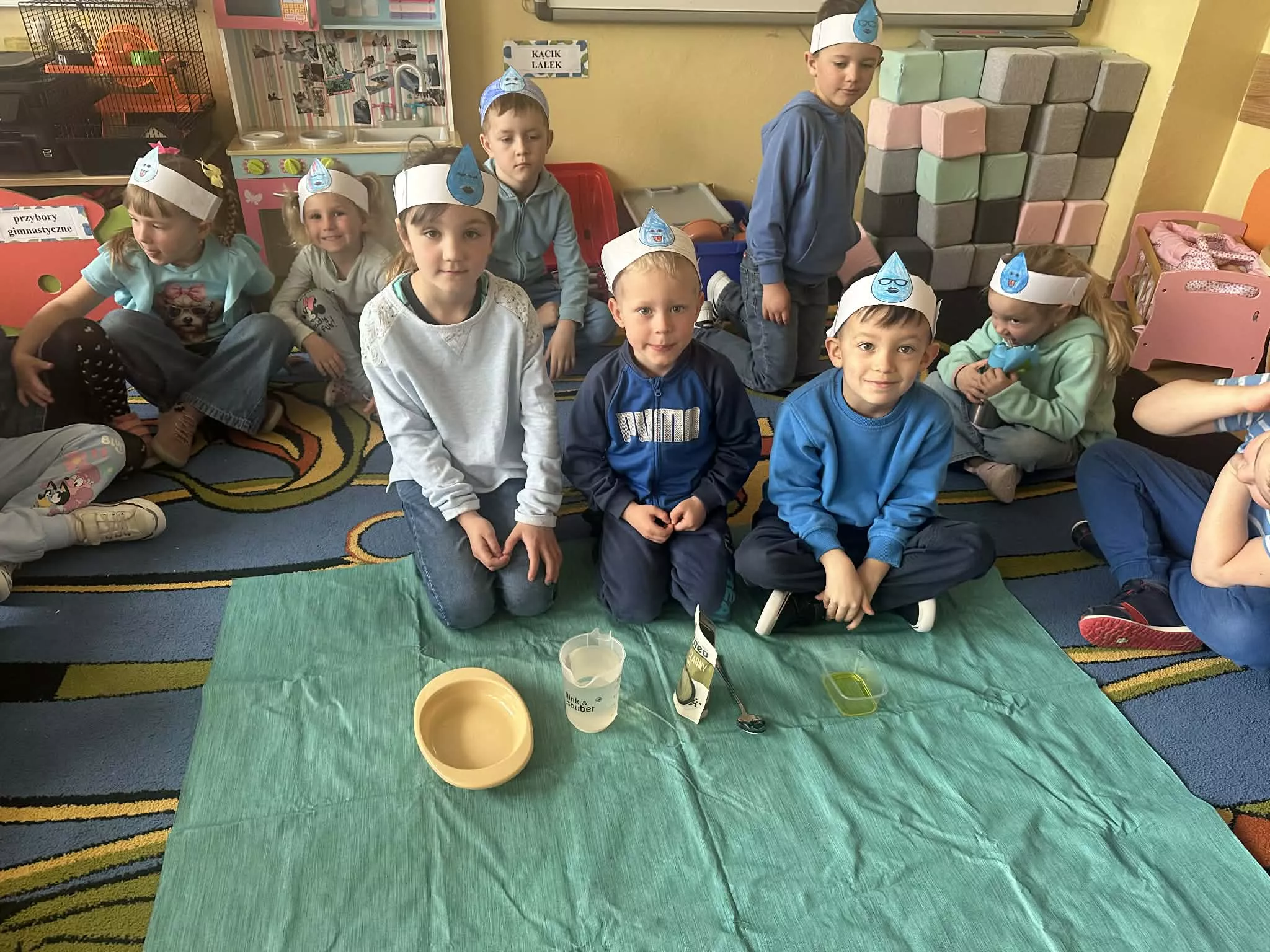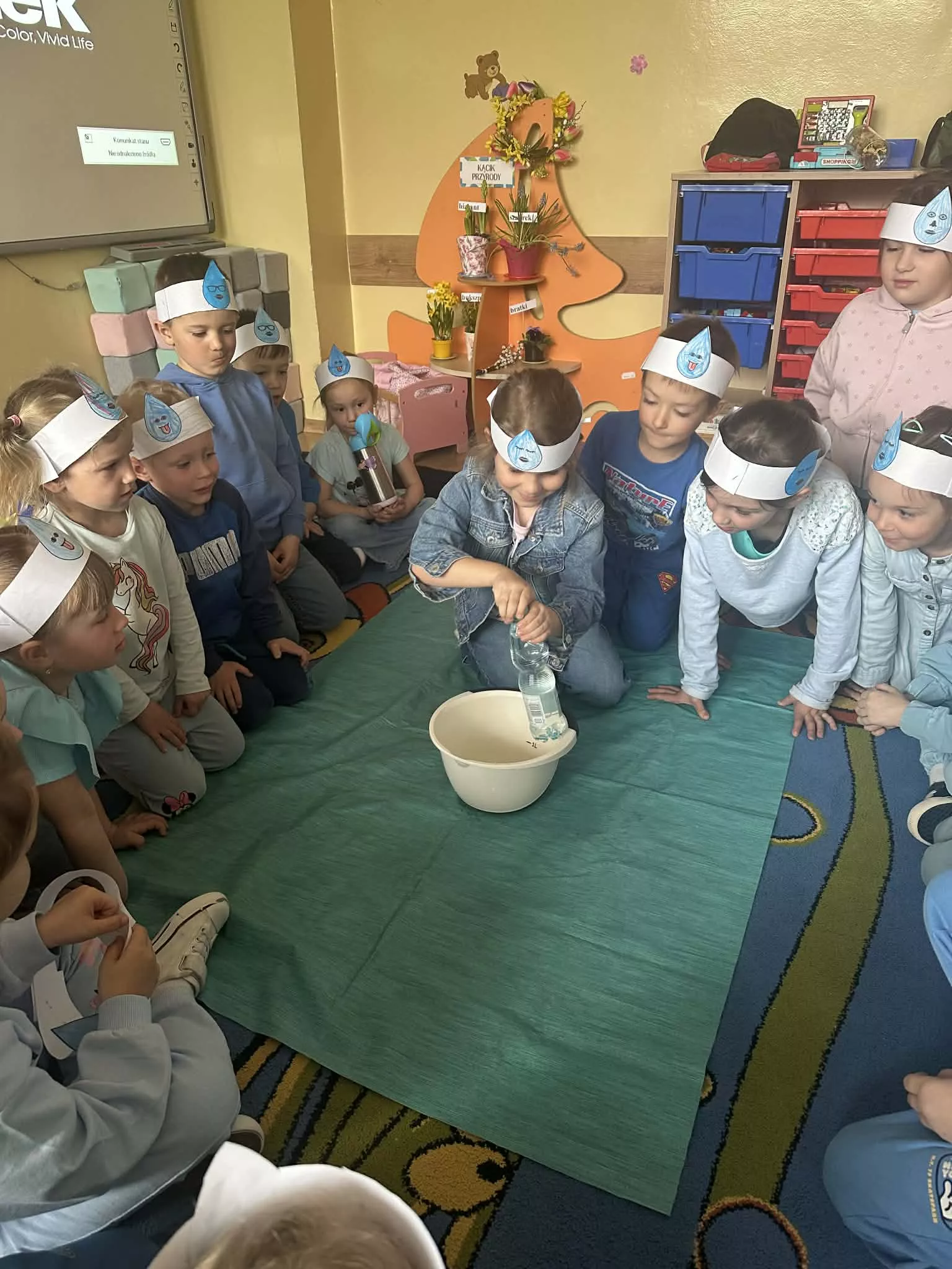 Najwięcej radości sprawiła dzieciom część doświadczalna, podczas której mogły samodzielnie eksperymentować z wodą i obserwować jej właściwości. Na zakończenie przedszkolaki wykonały pracę plastyczną – kropelkę wyklejoną kolorowym papierem, rozwijając swoją kreatywność i zdolności manualne.