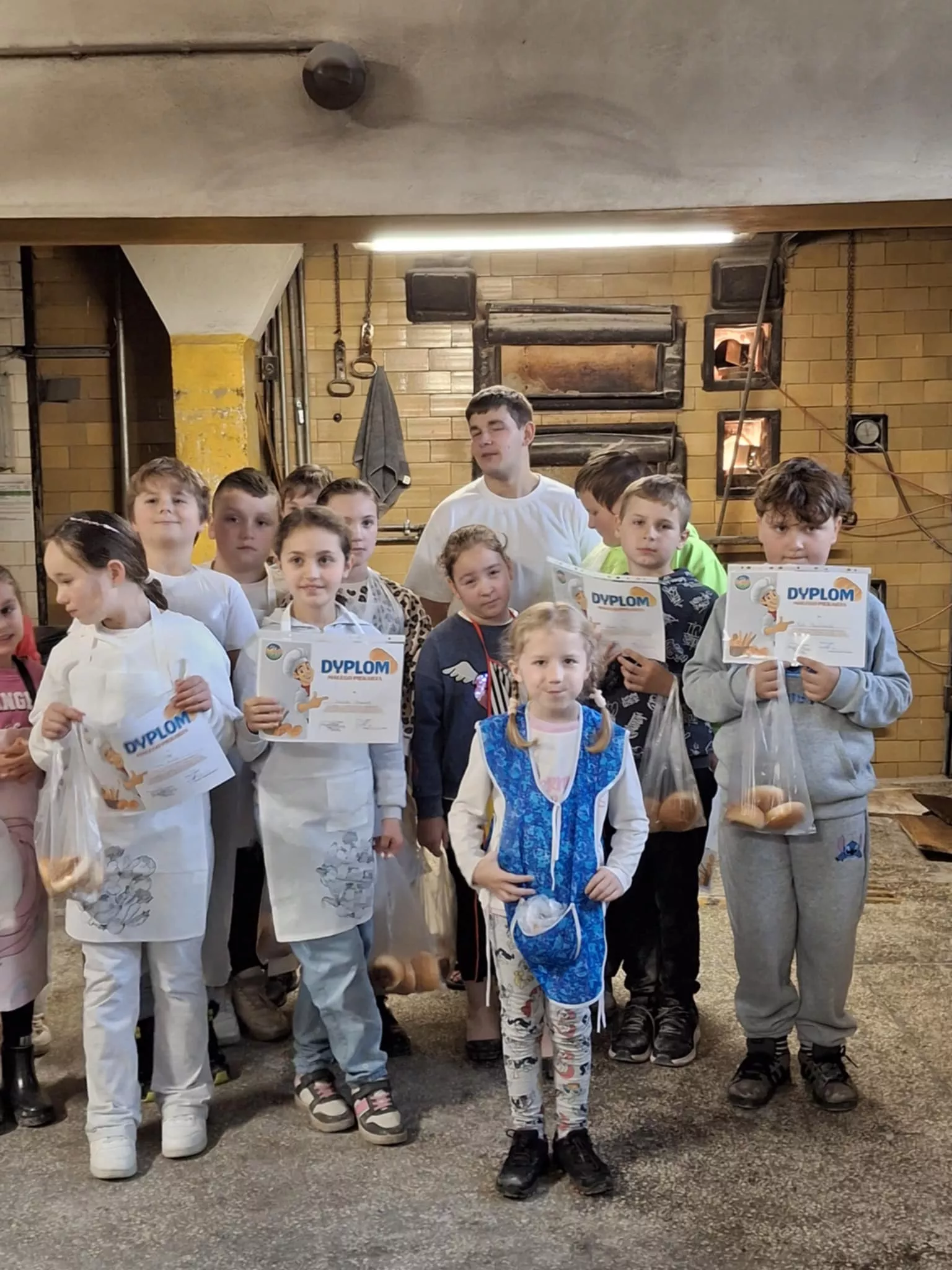 Tam poznali tajniki pieczenia chleba i innych rodzajów pieczywa. Mieli również możliwość spróbować swoich sił i samodzielnie wytworzyć różne smakołyki, które potem z apetytem spałaszowali. Dowiedzieli się także, że tutejsza piekarnia jest już jedną z niewielu tradycyjnych piekarni w Polsce.