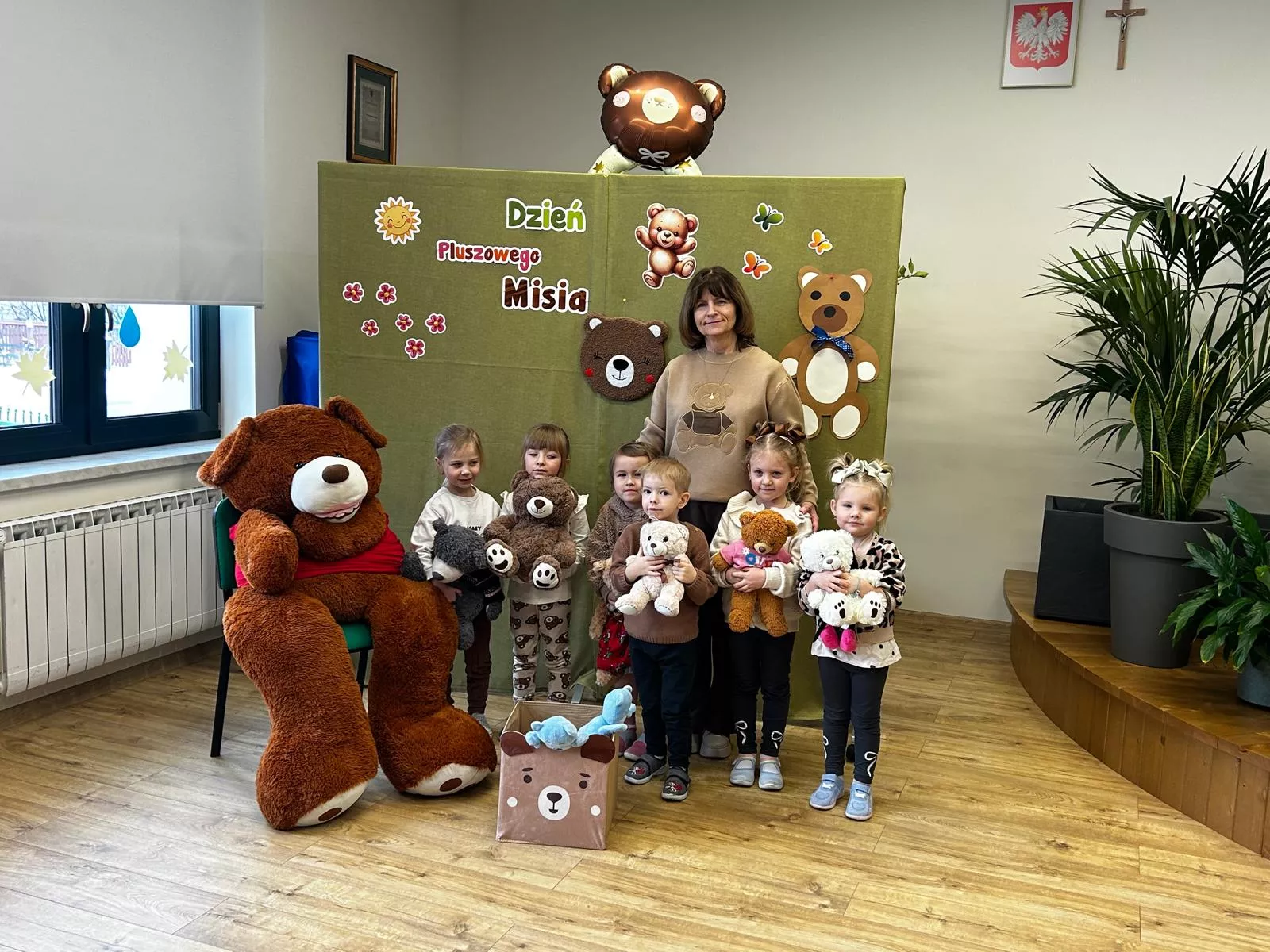Ukochane niedźwiadki przyniesione przez dzieci z domu oraz misiowe ubranka uświetniły tę uroczystość. Maluchy poznały historię pluszaka znanego na całym świecie. Misie były bohaterami zabaw muzycznych, plastycznych oraz piosenek i zagadek.