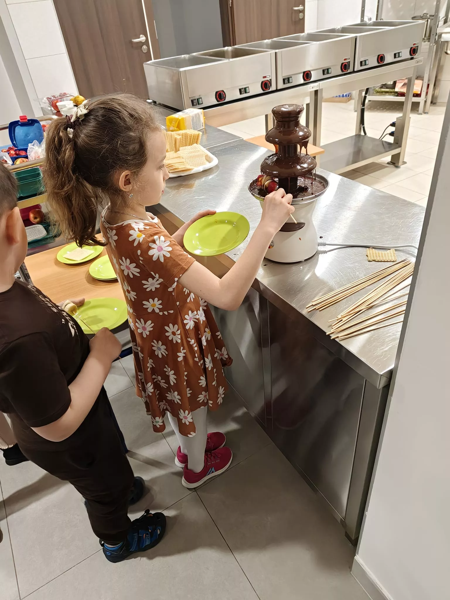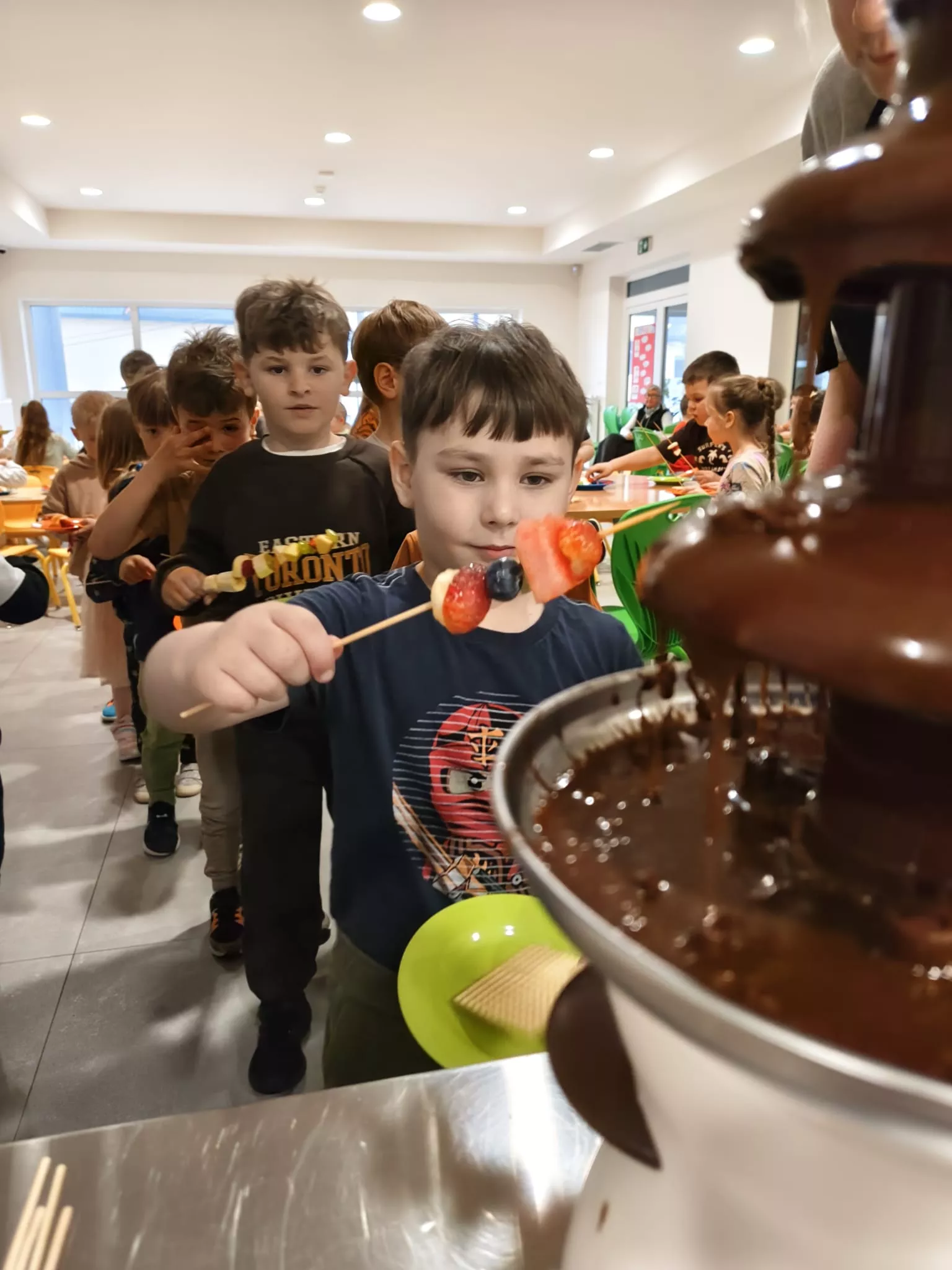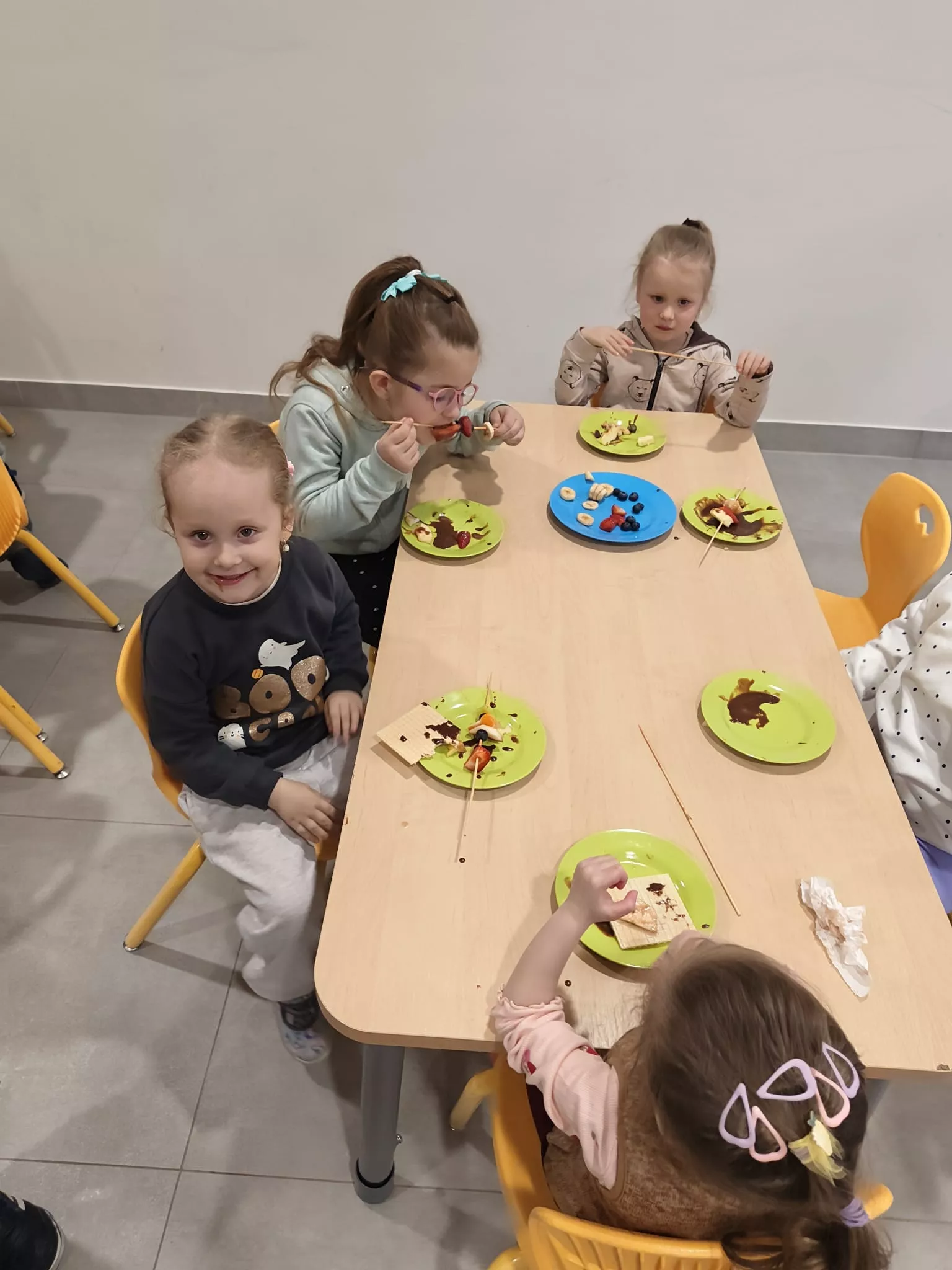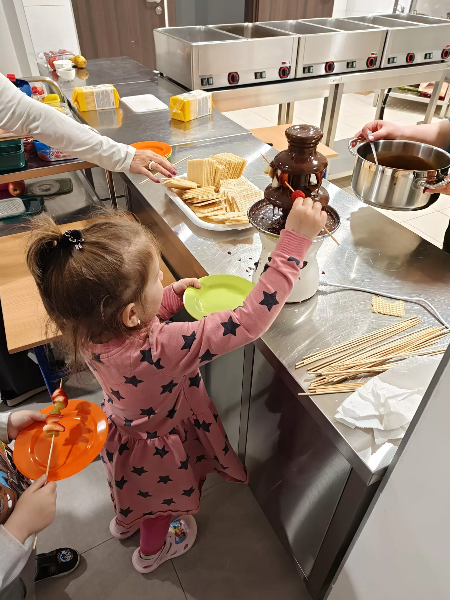 Nasze przedszkolaki w tym dniu miały okazję zobaczyć, powąchać, dotknąć, a przede wszystkim spróbować czekolady. Przedszkolaki dowiedziały się z czego powstaje ten przysmak oraz co jest jego głównym składnikiem. Zapoznały się także z procesem powstawania czekolady. Oprócz degustacji owoców zanurzonych w gorącej czekoladzie, dzieci uczestniczyły w czekoladowych zabawach. Na koniec wykonały czekoladowe kolorowanki i książeczki edukacyjne dotyczące powstawania tego rarytasu.