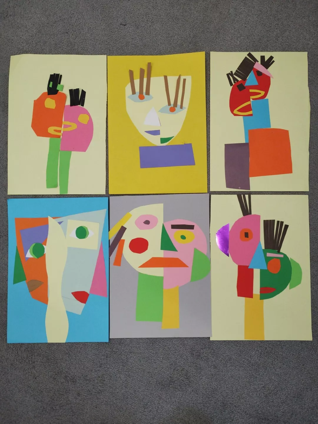Kompozycje portretowe powstały w ramach projektu edukacyjnego "Zabawa Sztuką" - zadanie 5a: Collage w nurcie kubistycznym.