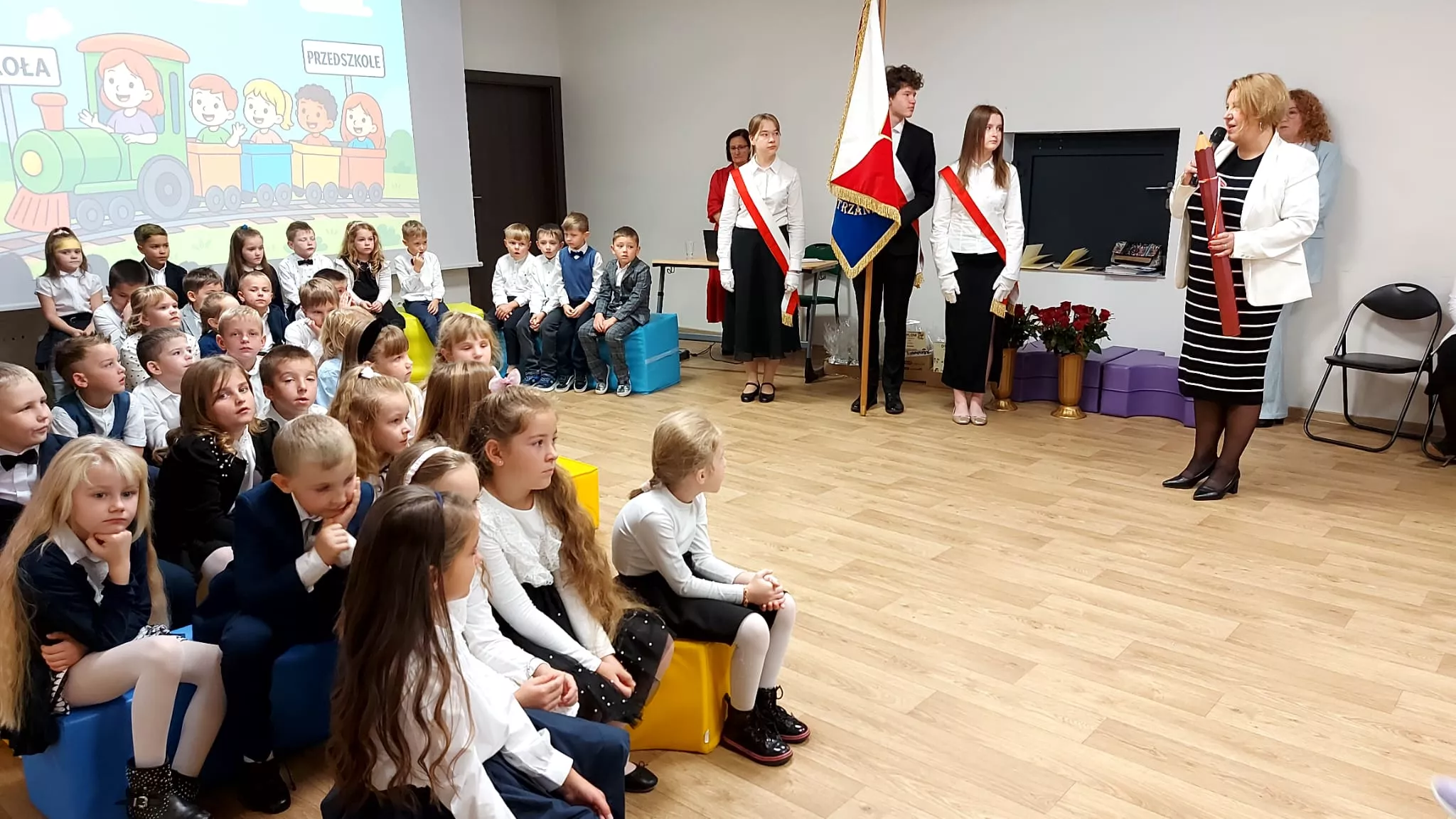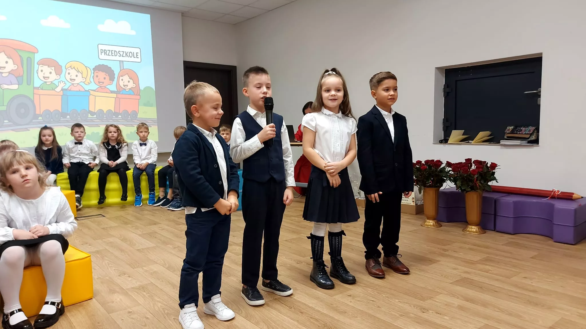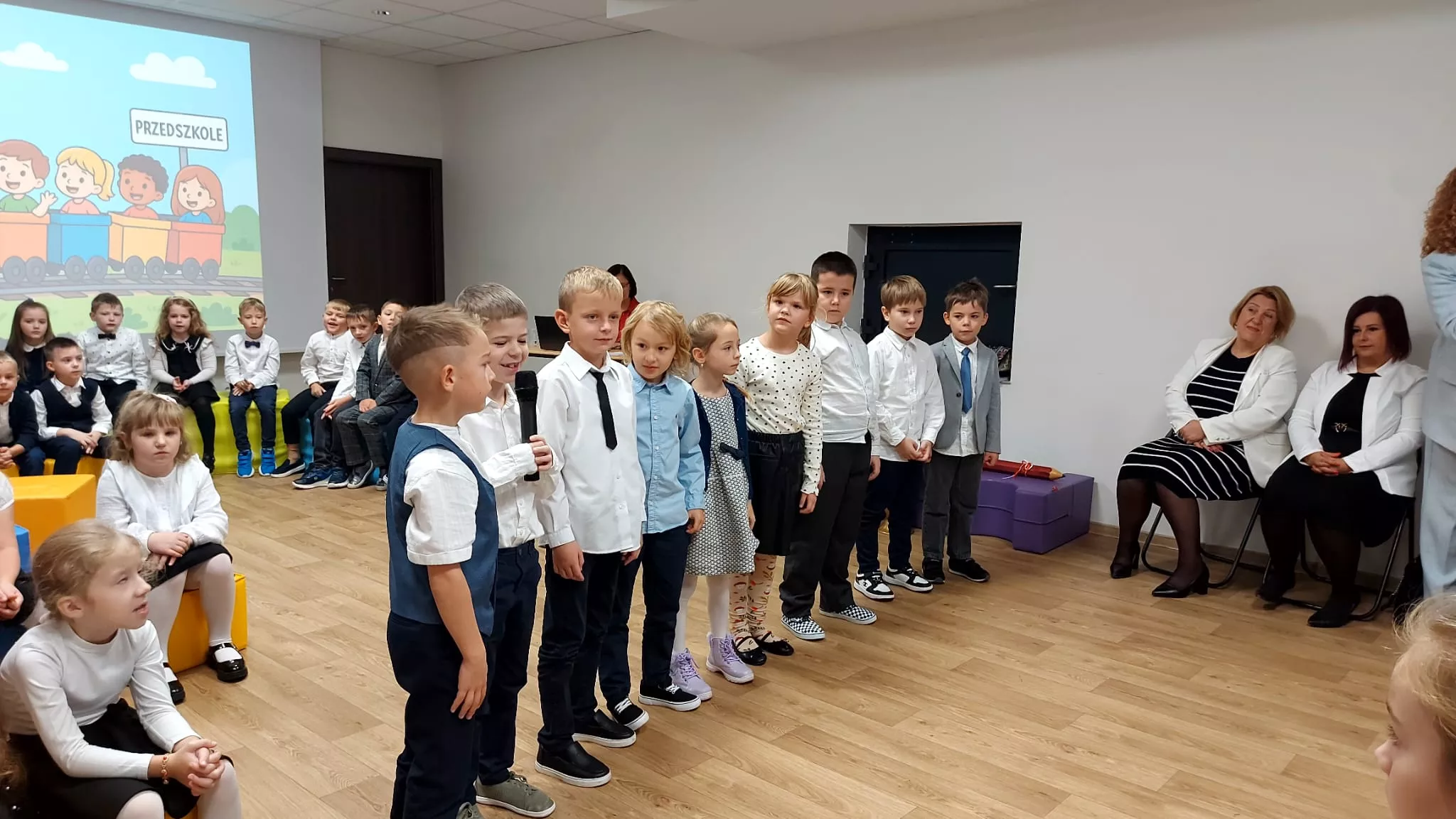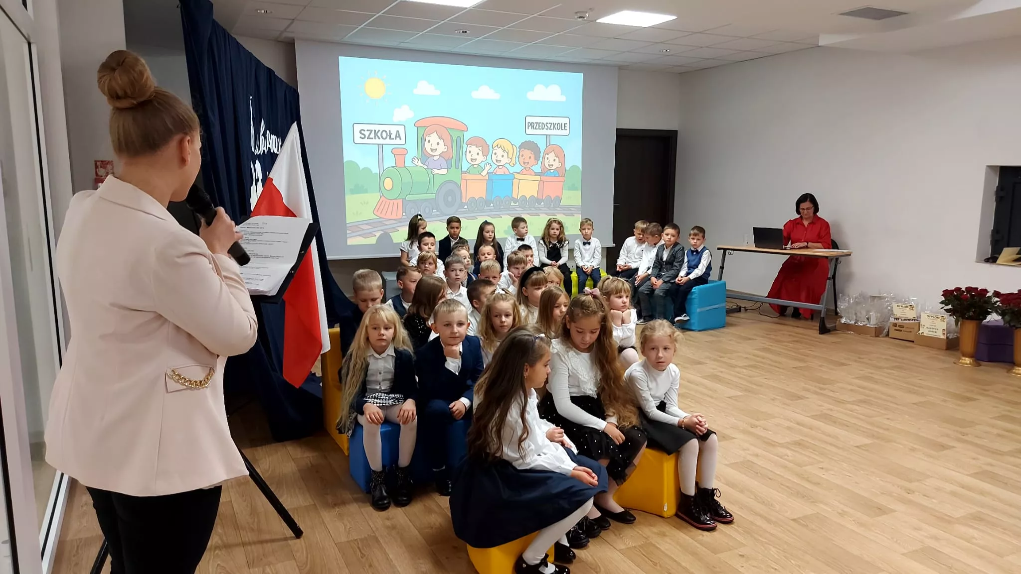 W tym roku pierwszaki wyruszyły w symboliczną podróż koleją z Przedszkola do Szkoły. Każda stacja na tej trasie była okazją do zaprezentowania swoich talentów i umiejętności – dzieci recytowały wiersze, śpiewały piosenki, rozwiązywały matematyczne zagadki, opowiadały o symbolach narodowych oraz prezentowały swoje prace plastyczne. Nie zabrakło również ważnych informacji o zasadach obowiązujących w szkole i o tym, jak być wzorowym uczniem.