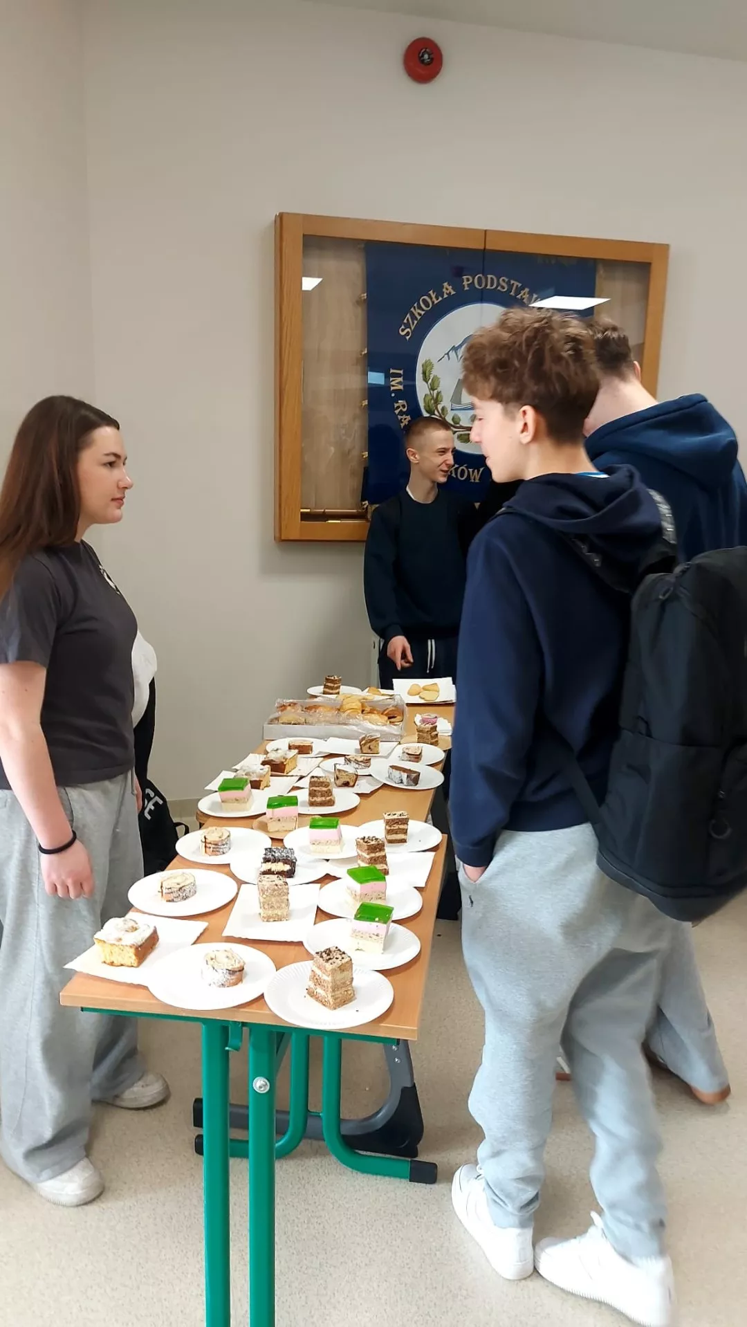 Takie właśnie pierwszorzędne łakocie przygotowali nasi wspaniali wychowankowie i ich rodzice na nasz szkolny „Słodki Dzień”, który odbył się w ostatni wtorek. Uczniowie, nauczyciele oraz pozostali pracownicy szkoły byli zachwyceni smakiem ciast, które znikały bardzo szybko. Z wielką dumą informujemy, że podczas akcji zebraliśmy aż 1745,40 zł! Kwota ta w całości zostanie przeznaczona na wyposażenie naszych szkolnych korytarzy w sprzęty, które będą umilały dzieciom przerwy, np. piłkarzyki oraz zestawy gier. Bardzo serdecznie dziękujemy za aktywny udział w akcji UCZNIOM i RODZICOM. Bez Was by się to nie udało!