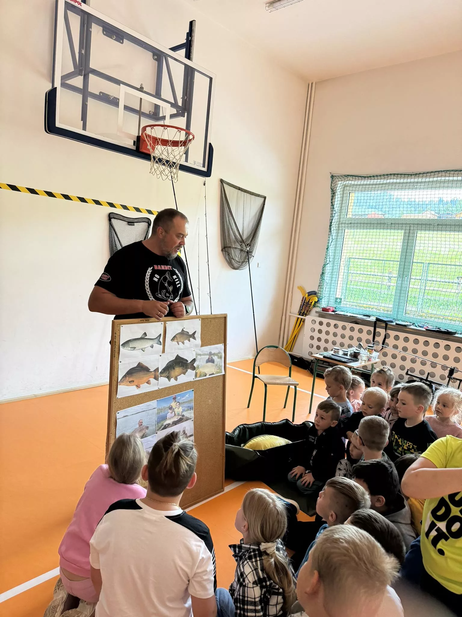 Dziś nasze przedszkolaki i dzieci ze szkoły w Małem Cichem miały wyjątkową okazję spotkać się z doświadczonym wędkarzem panem Maciejem Gąsienicą Walczakiem. To była wspaniała lekcja wędkarstwa. Pan Maciej opowiedział dzieciom o różnych gatunkach ryb, które można spotkać w naszych okolicznych wodach, oraz pokazał, jak prawidłowo posługiwać się wędką. Dzieci z entuzjazmem uczyły się, jak zakładać przynętę na haczyk i jakie są zasady bezpiecznego łowienia. Wszyscy słuchali z zaciekawieniem o znaczeniu ochrony środowiska wodnego