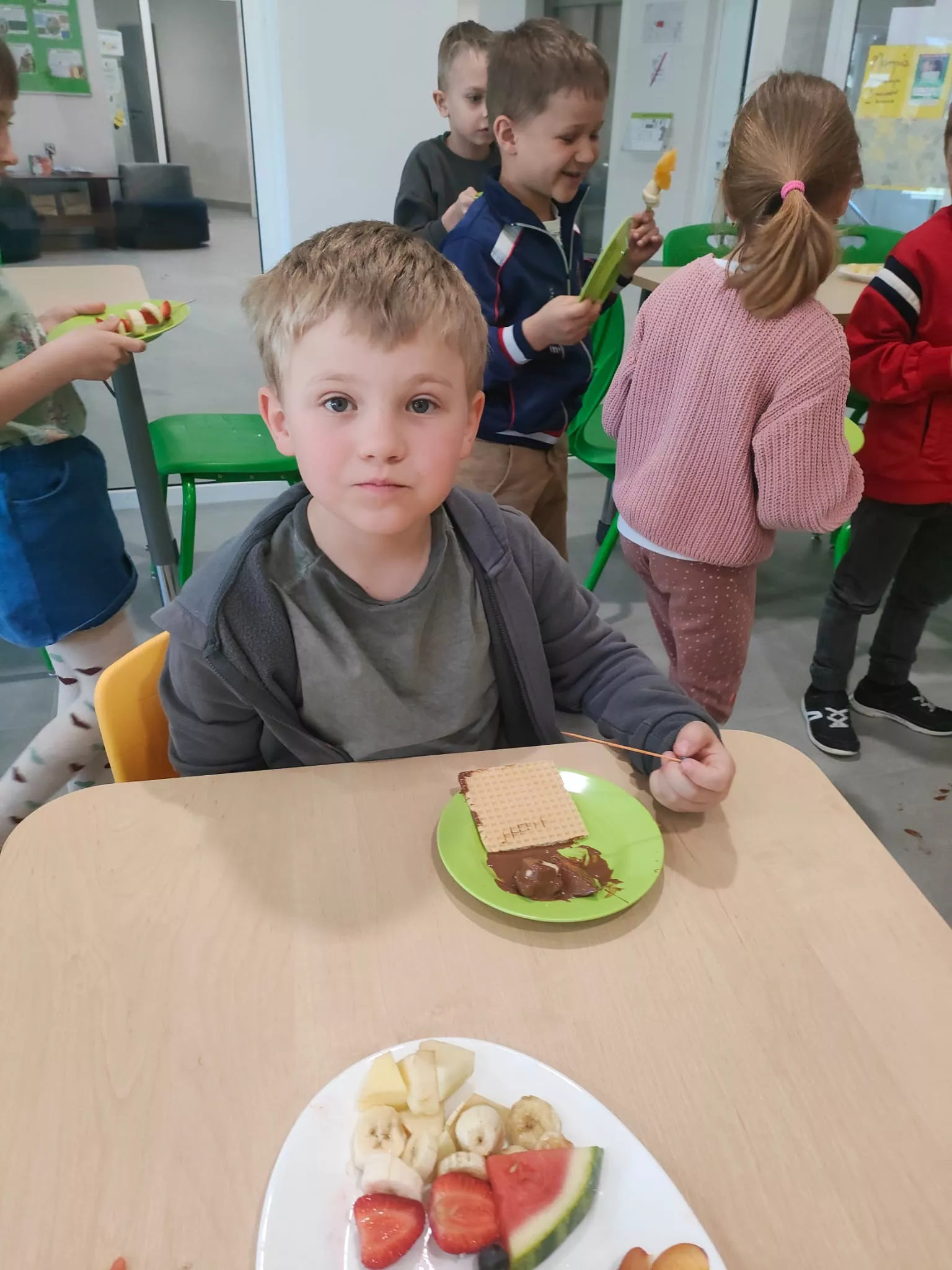 12 kwietnia w naszym Przedszkolu odbył się Światowy Dzień Czekolady. Była to okazja aby zobaczyć, powąchać, dotknąć, a przede wszystkim spróbować czekoladę. Dzieci dowiedziały się z czego powstaje czekolada, oraz co jest jej głównym składnikiem. Przedszkolaki poznały także jak wygląda proces tworzenia czekolady i gdzie jest stosowana. Następnie dzieci uczestniczyły w czekoladowej uczcie, w której zadaniem było zrobienie owocowego szaszłyka i zanurzenie go w fontannie czekolady. Z pewnością był to najpyszniejszy dzień, co można było zobaczyć po uśmiechach i czekoladowych buziach przedszkolaków.