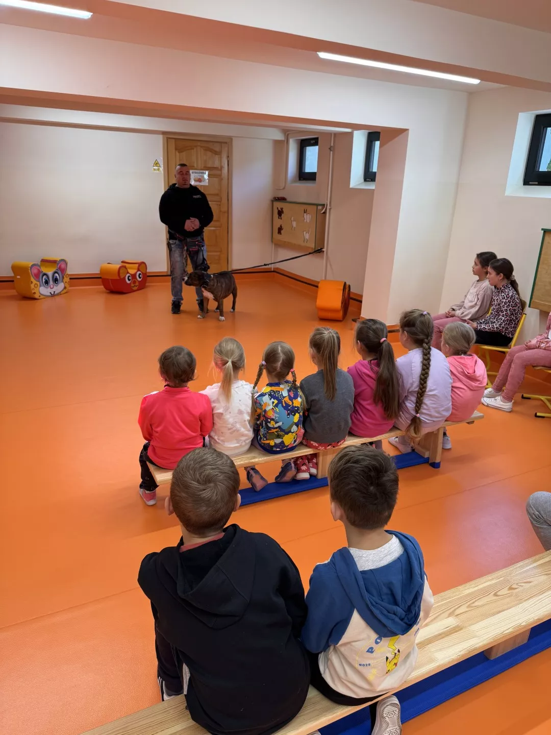 Nasz gość udzielił przedszkolakom i uczniom cennych rad na temat rozumienia zachowań psów, sposobów obrony przed ich atakiem i mądrego wychowania. Była to ciekawa lekcja o najlepszym zwierzęcym przyjacielu człowieka.