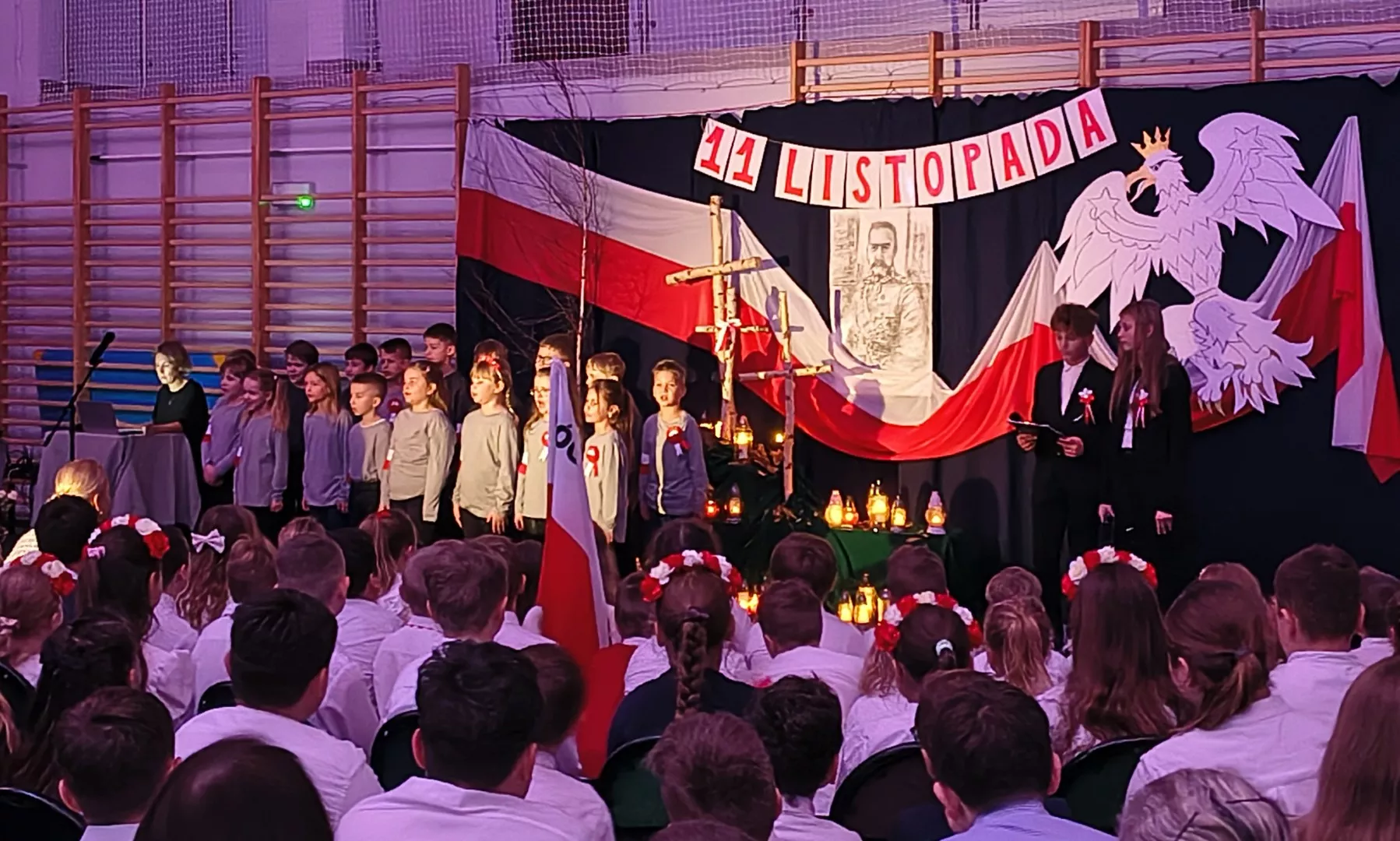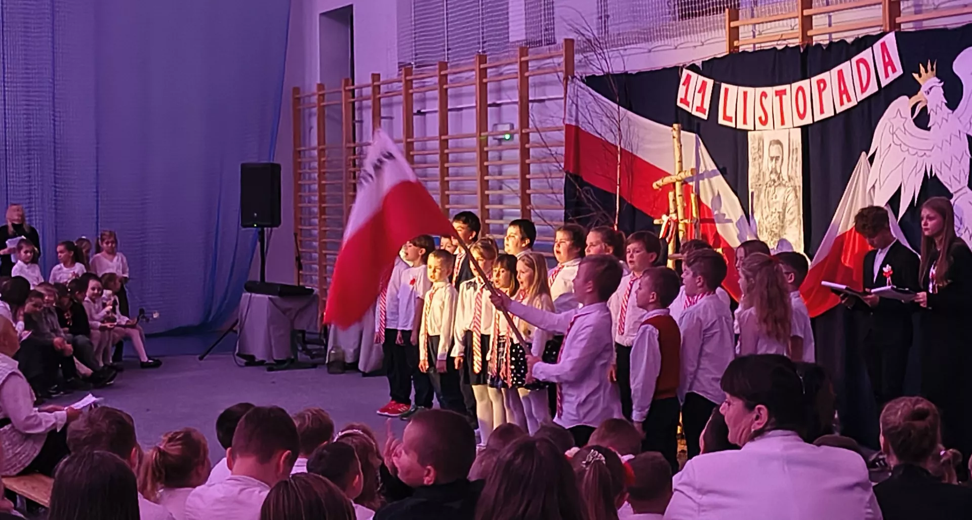 Uczniowie klas 1–8 – zarówno ze szkoły macierzystej, jak i szkół filialnych – zaprezentowali niezwykle poruszające występy artystyczne, które na długo pozostaną w naszej pamięci. Każdy utwór, gest i słowo były wyrazem miłości do Polski i szacunku dla jej historii.